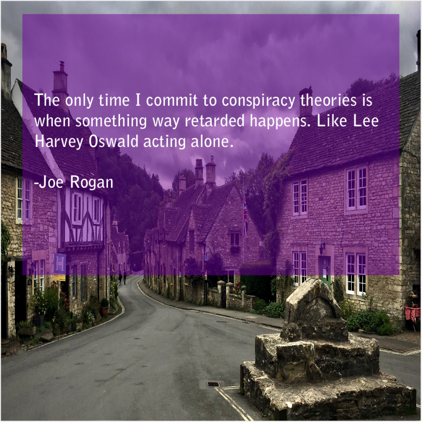 Joe Rogan Joe Rogan – The only time I commit… August 23, 2019 admin “The only time I commit to conspiracy theories is when something way retarded happens. Like Lee Harvey Oswald acting alone.”-Joe Rogan
