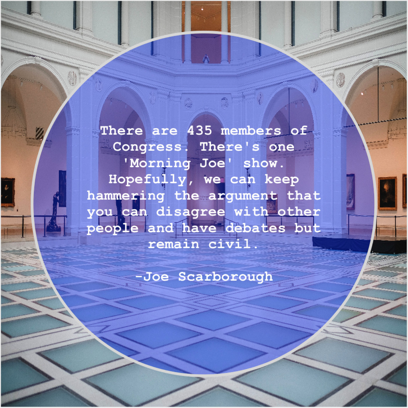 “There are 435 members of Congress. There’s one ‘Morning Joe’ show. Hopefully, we can keep hammering the argument that you can disagree with other people and have debates but remain civil.”