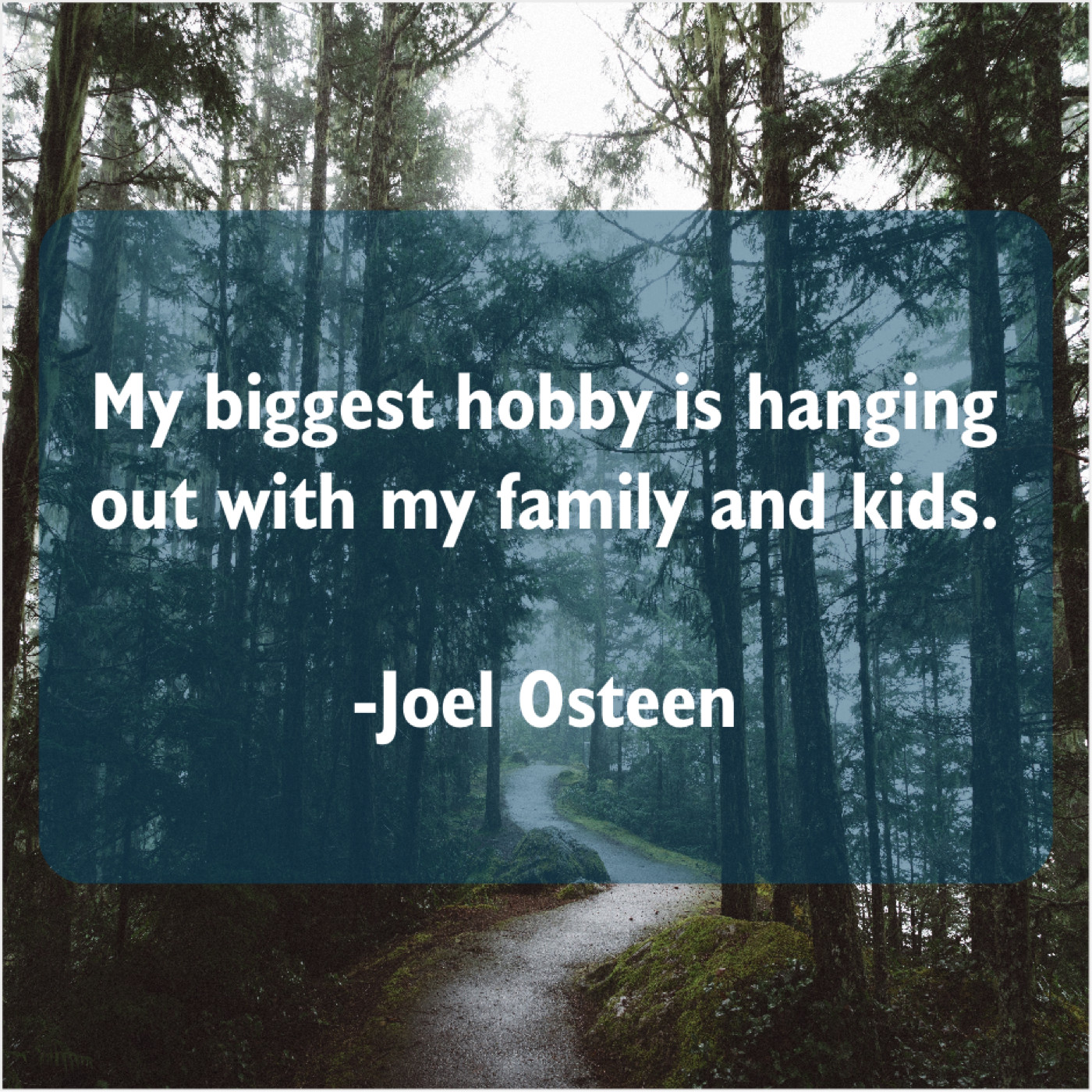 Joel Osteen Joel Osteen – My biggest hobby is hanging… August 10, 2019 admin “My biggest hobby is hanging out with my family and kids.”-Joel Osteen