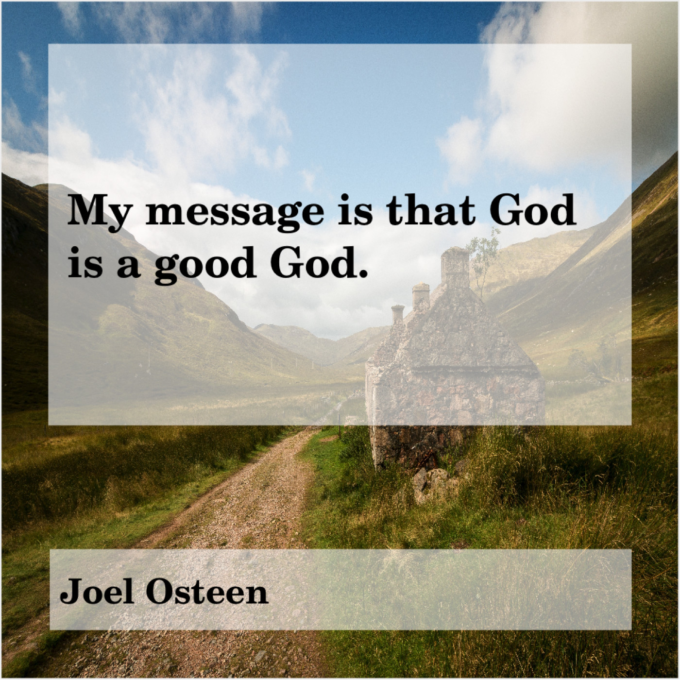 Joel Osteen Joel Osteen – My message is that God… July 21, 2019 admin “My message is that God is a good God.”-Joel Osteen