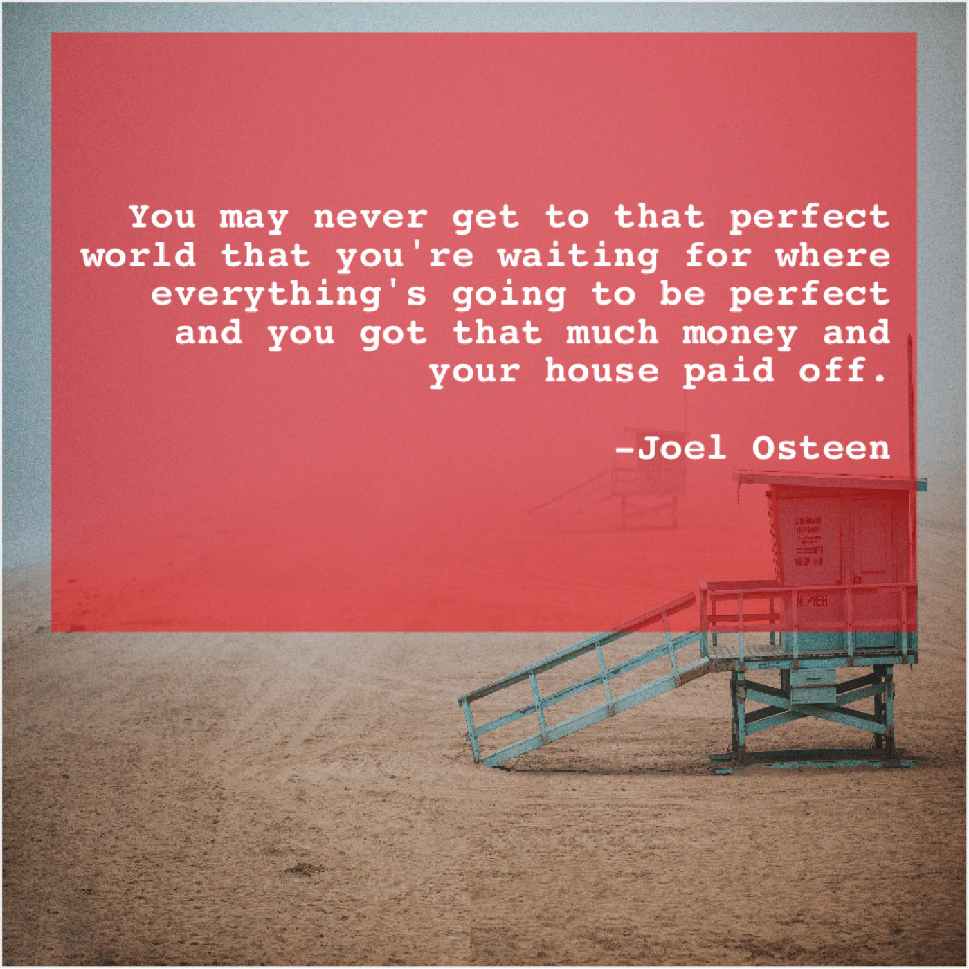 Joel Osteen Joel Osteen – You may never get to… July 29, 2019 admin “You may never get to that perfect world that you’re waiting for where everything’s going to be perfect and you got that much money and your house paid off.”-Joel Osteen