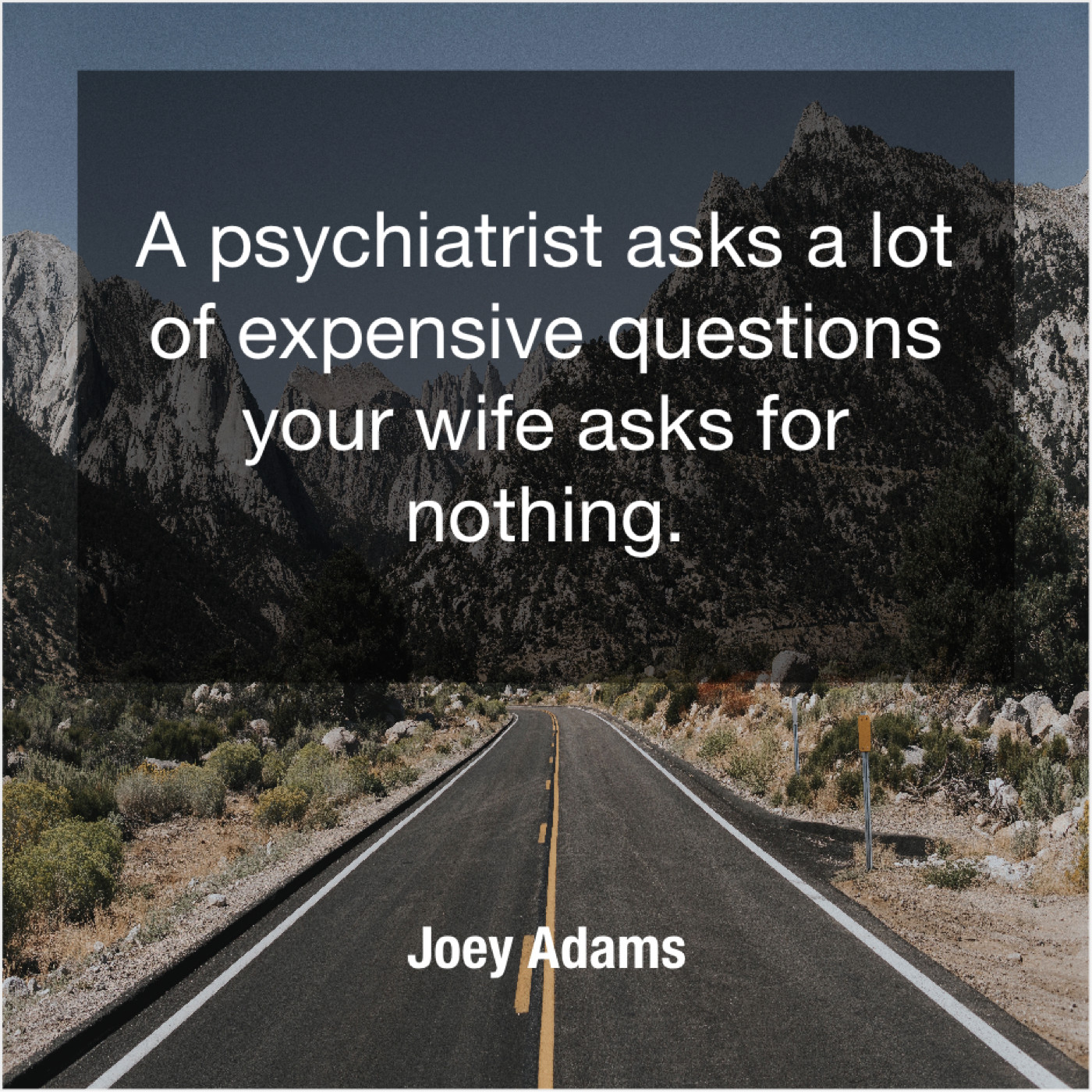 Joey Adams Joey Adams – A psychiatrist asks a lot… November 11, 2018 admin “A psychiatrist asks a lot of expensive questions your wife asks for nothing.”-Joey Adams