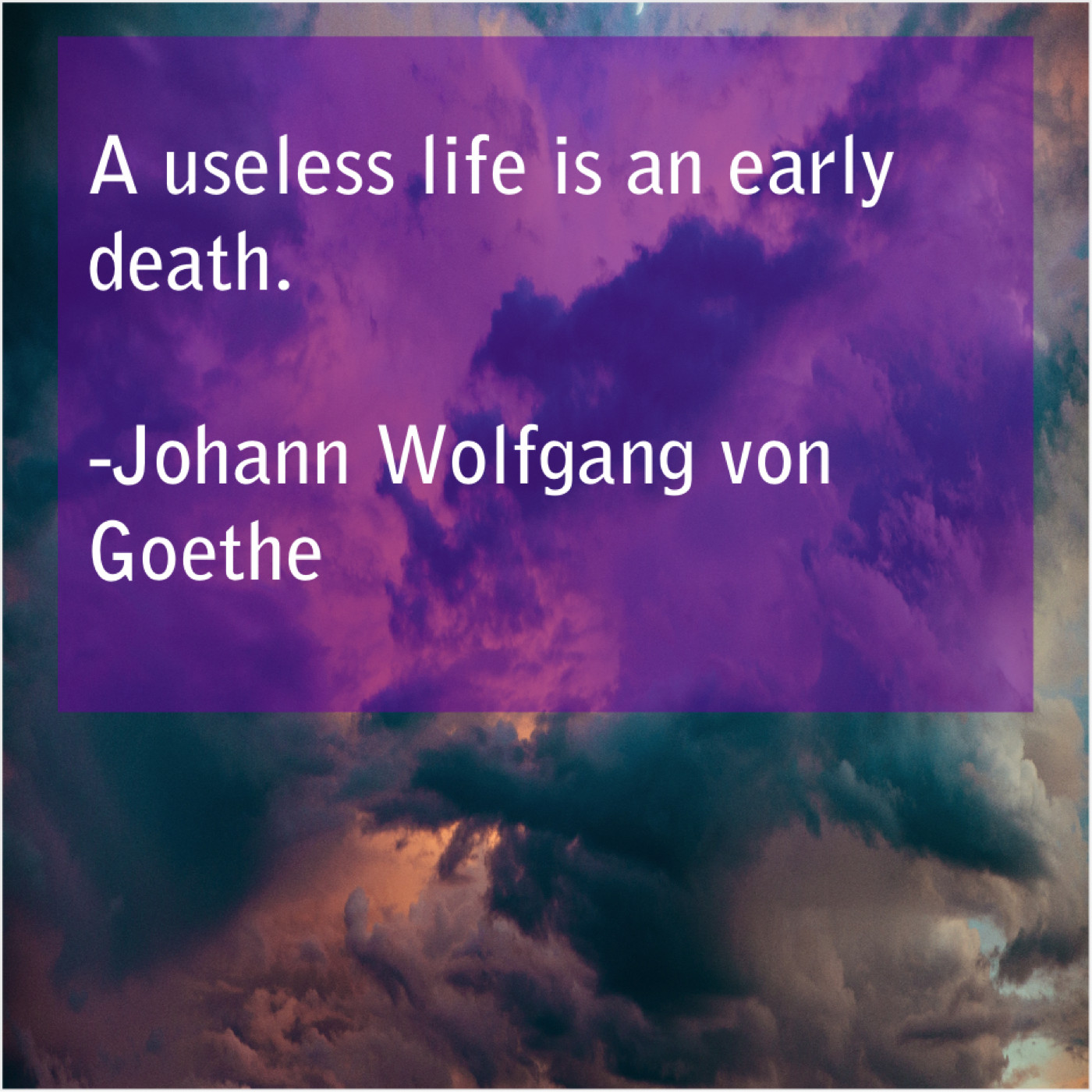 Johann Wolfgang von Goethe Johann Wolfgang von Goethe – A useless life is an… February 16, 2019 admin “A useless life is an early death.”-Johann Wolfgang von Goethe