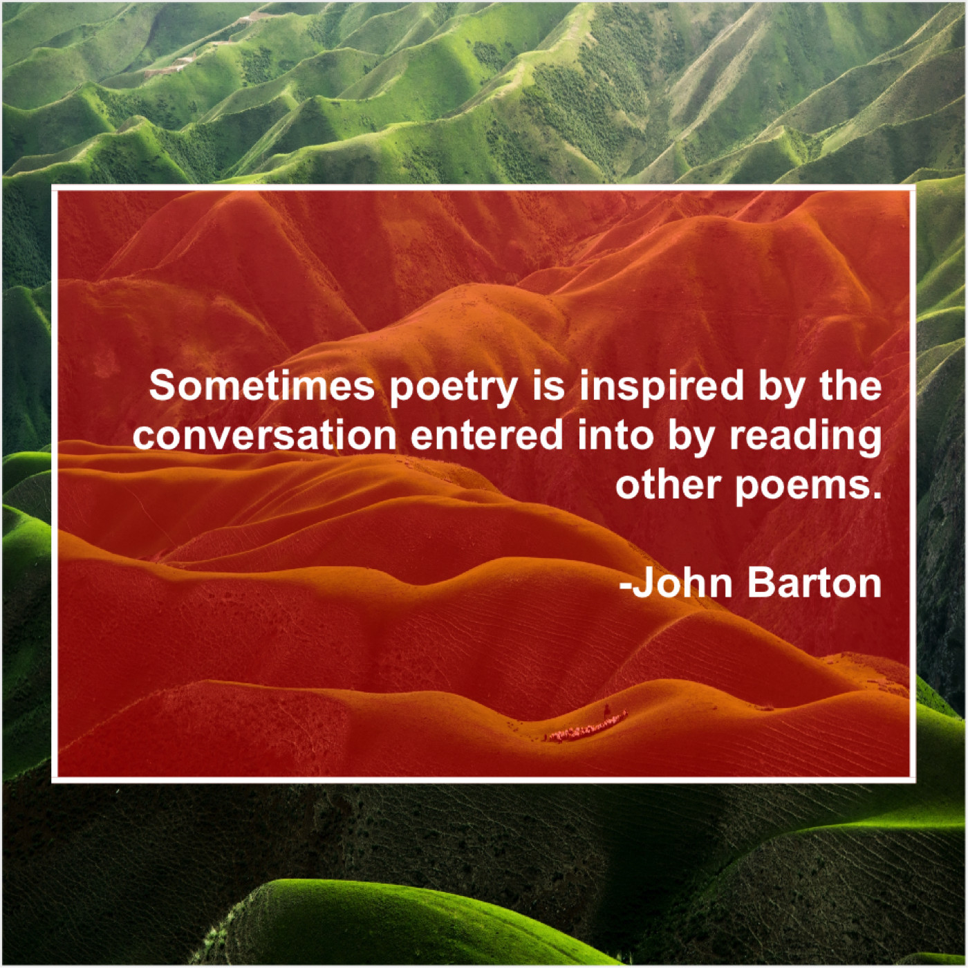John Barton John Barton – Sometimes poetry is inspired by… February 26, 2019 admin “Sometimes poetry is inspired by the conversation entered into by reading other poems.”-John Barton