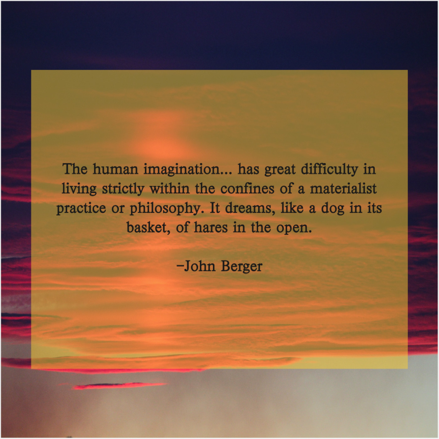 John Berger John Berger – The human imagination… has great… November 11, 2018 admin “The human imagination… has great difficulty in living strictly within the confines of a materialist practice or philosophy. It dreams, like a dog in its basket, of hares in the open.”-John Berger