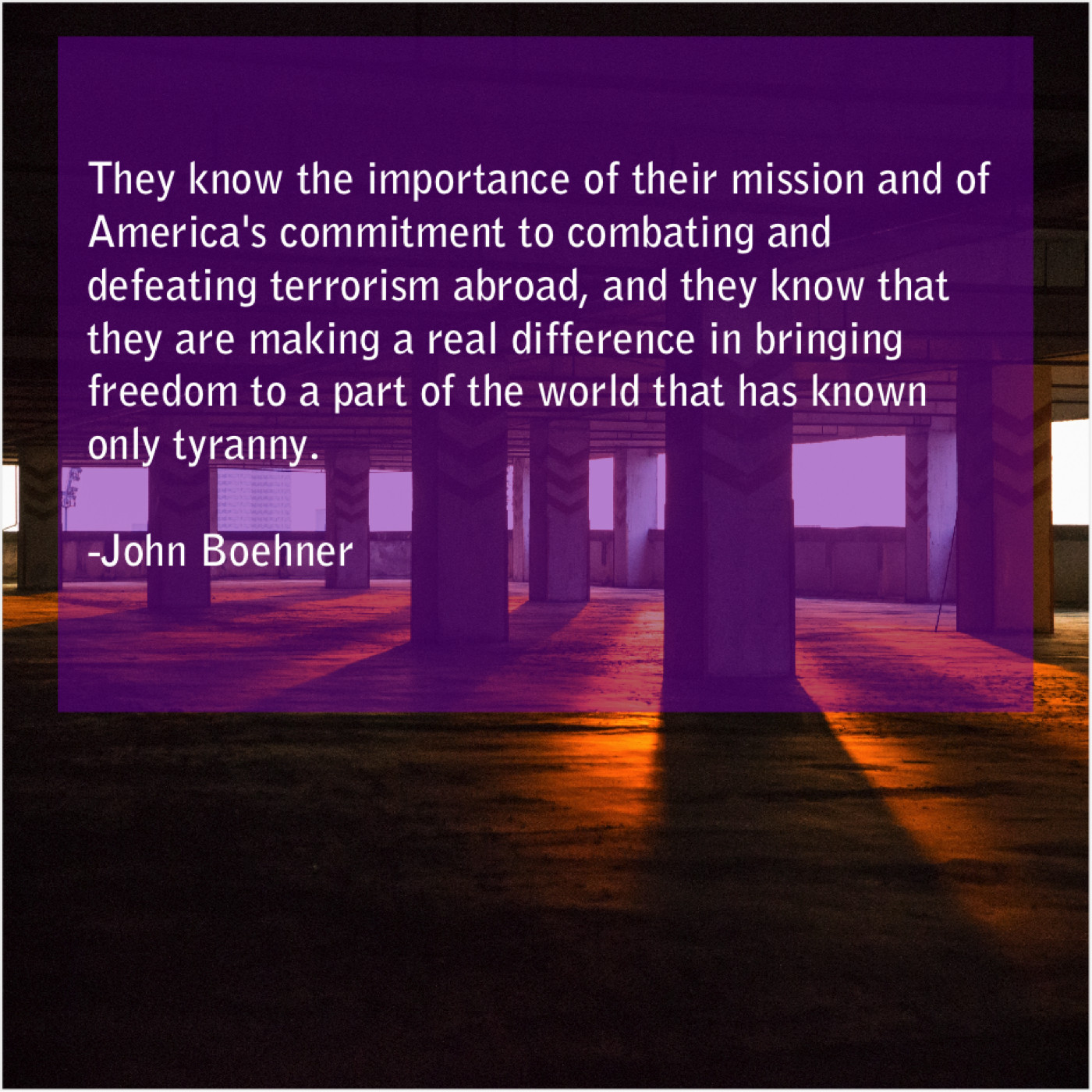 “They know the importance of their mission and of America’s commitment to combating and defeating terrorism abroad, and they know that they are making a real difference in bringing freedom to a part of the world that has known only tyranny.”