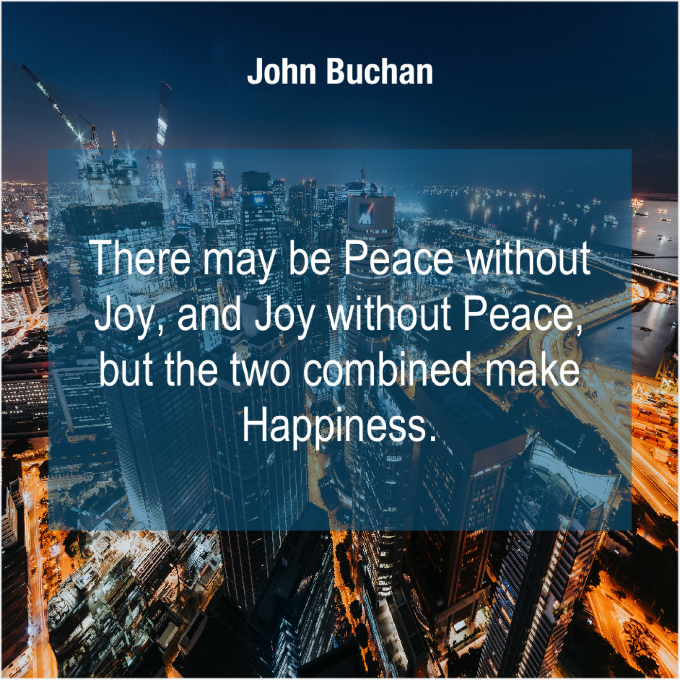 John Buchan John Buchan – There may be Peace without… December 29, 2018 admin “There may be Peace without Joy, and Joy without Peace, but the two combined make Happiness.”-John Buchan