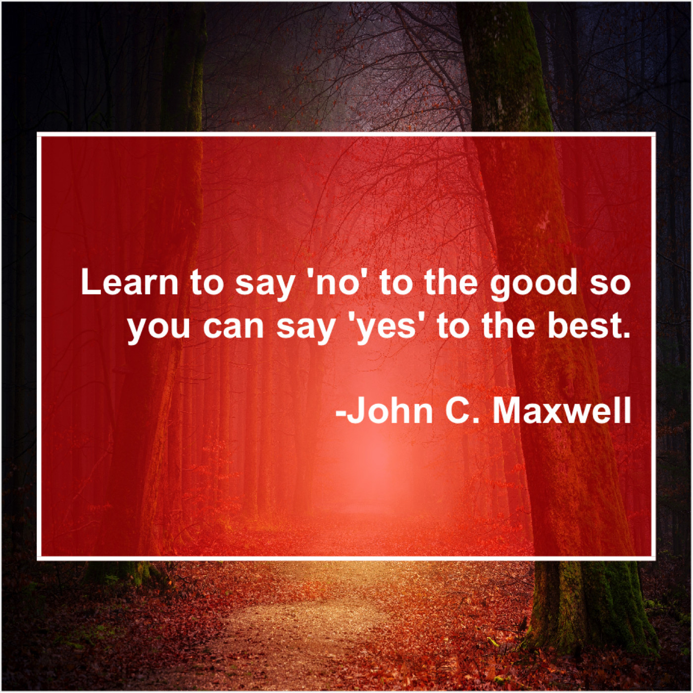 John C. Maxwell John C. Maxwell – Learn to say ‘no’ to… June 18, 2019 admin “Learn to say ‘no’ to the good so you can say ‘yes’ to the best.”-John C. Maxwell
