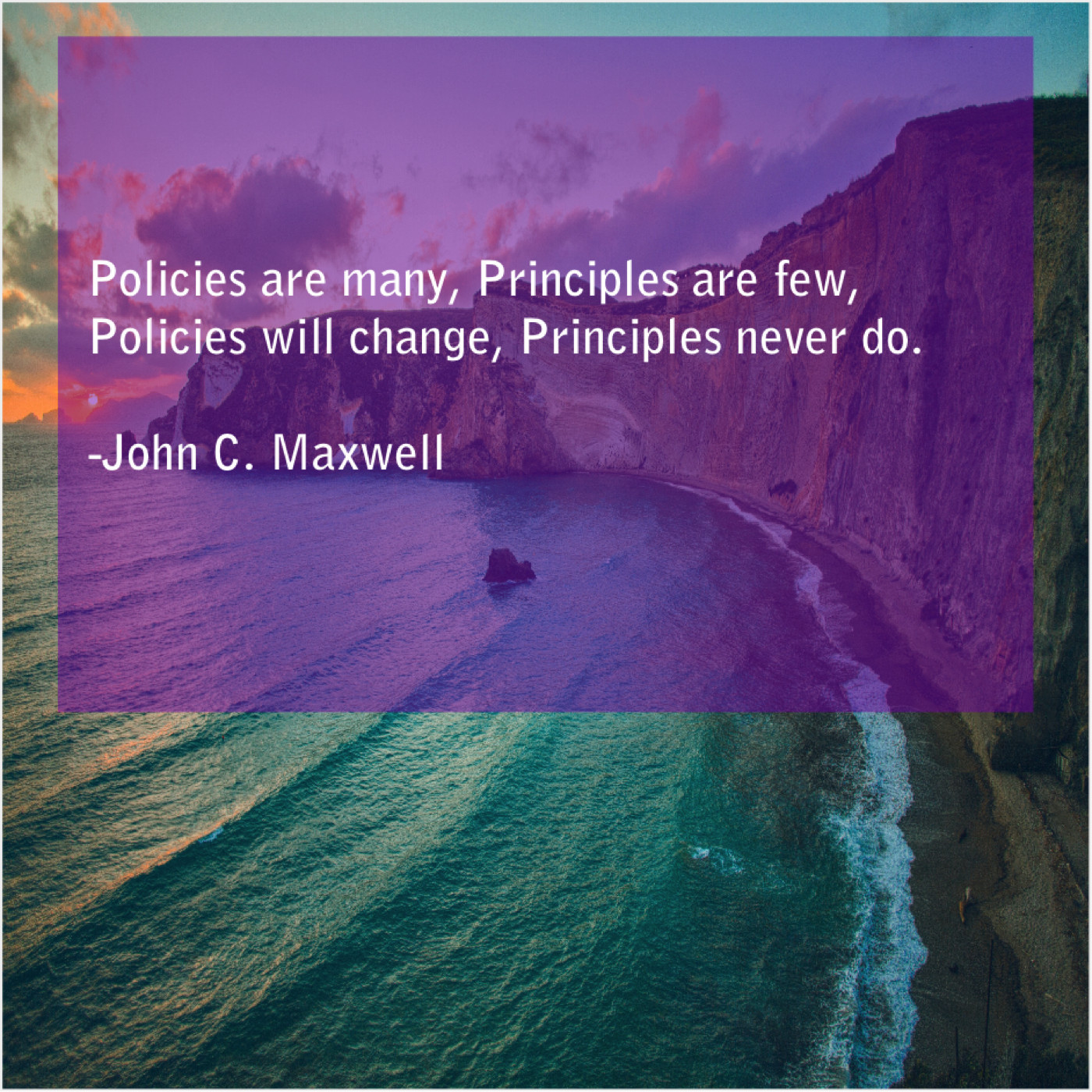 John C. Maxwell John C. Maxwell – Policies are many, Principles are… June 15, 2019 admin “Policies are many, Principles are few, Policies will change, Principles never do.”-John C. Maxwell