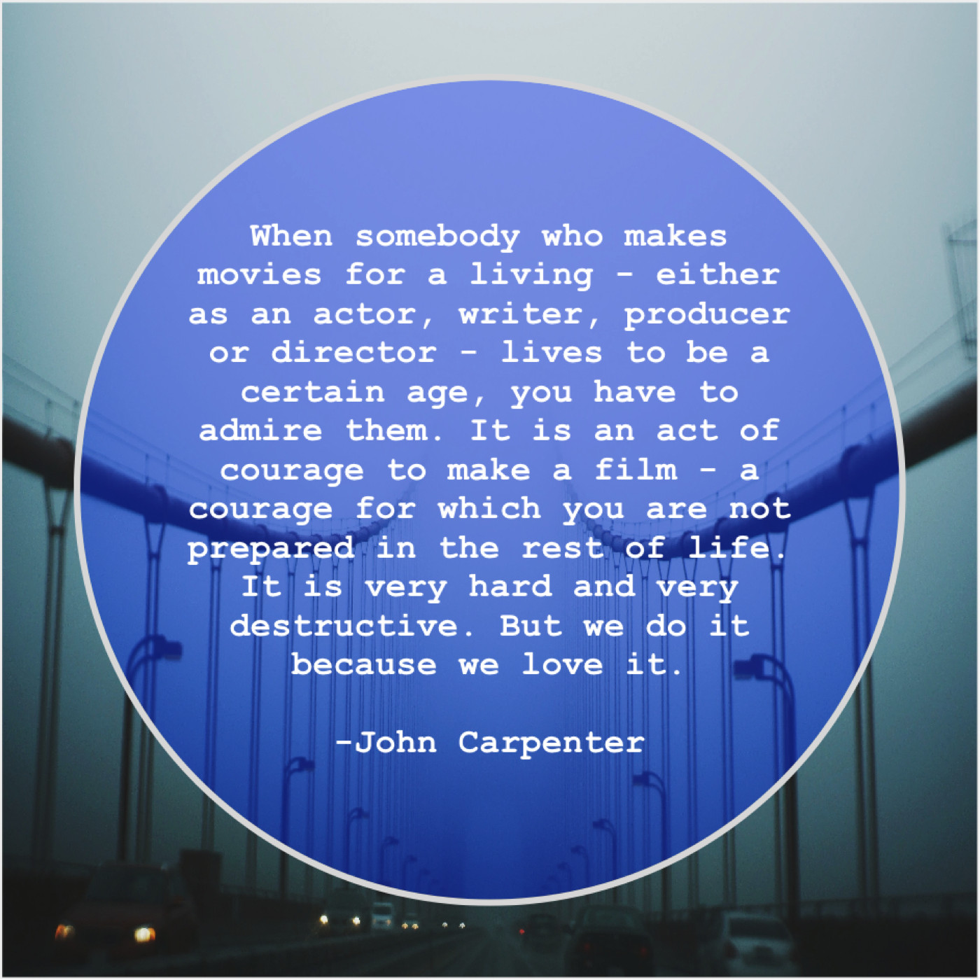 “When somebody who makes movies for a living – either as an actor, writer, producer or director – lives to be a certain age, you have to admire them. It is an act of courage to make a film – a courage for which you are not prepared in the rest of life. It is very hard and very destructive. But we do it because we love it.”