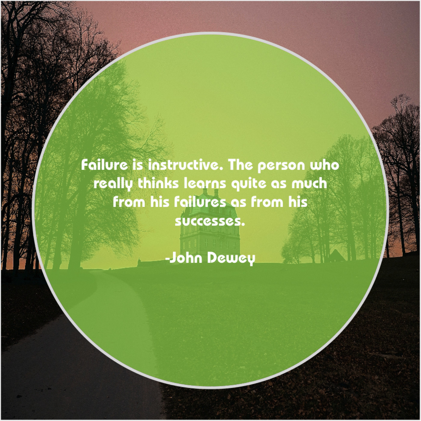John Dewey John Dewey – Failure is instructive. The person… January 2, 2019 admin “Failure is instructive. The person who really thinks learns quite as much from his failures as from his successes.”-John Dewey