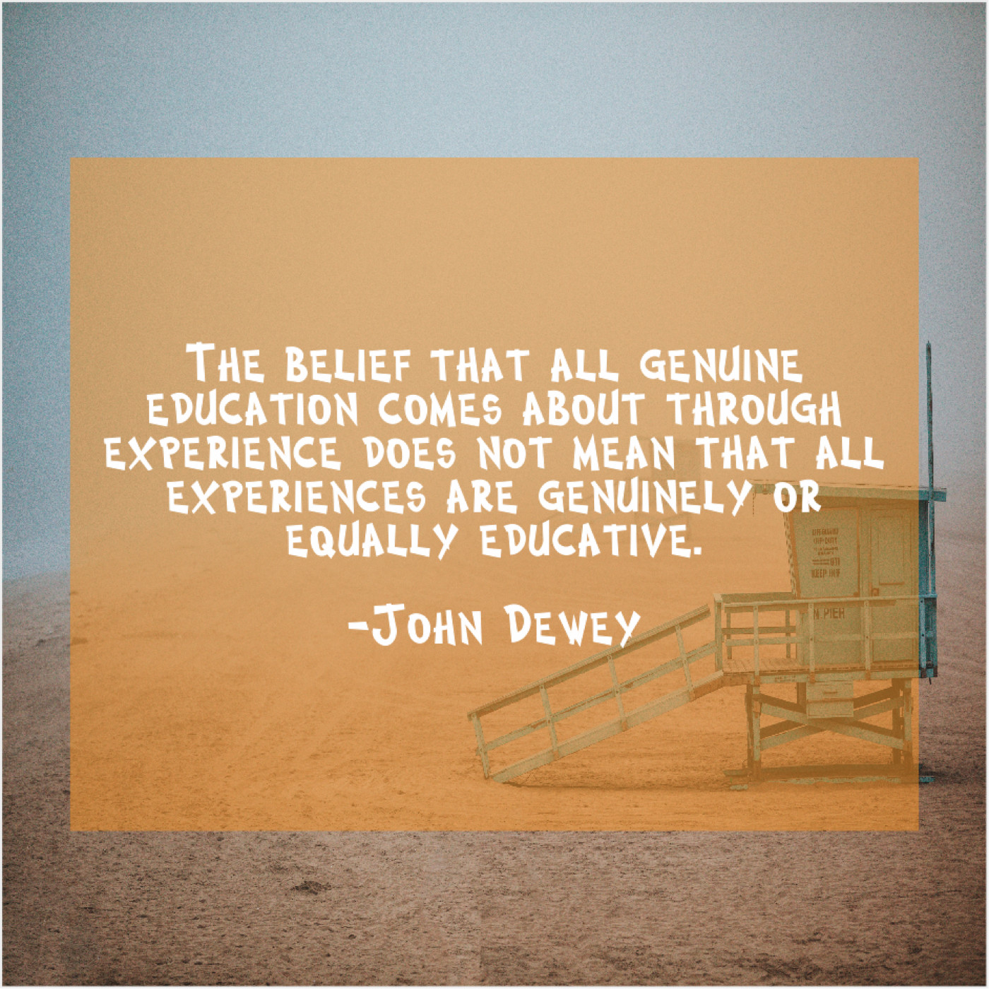 John Dewey John Dewey – The belief that all genuine… April 29, 2019 admin “The belief that all genuine education comes about through experience does not mean that all experiences are genuinely or equally educative.”-John Dewey