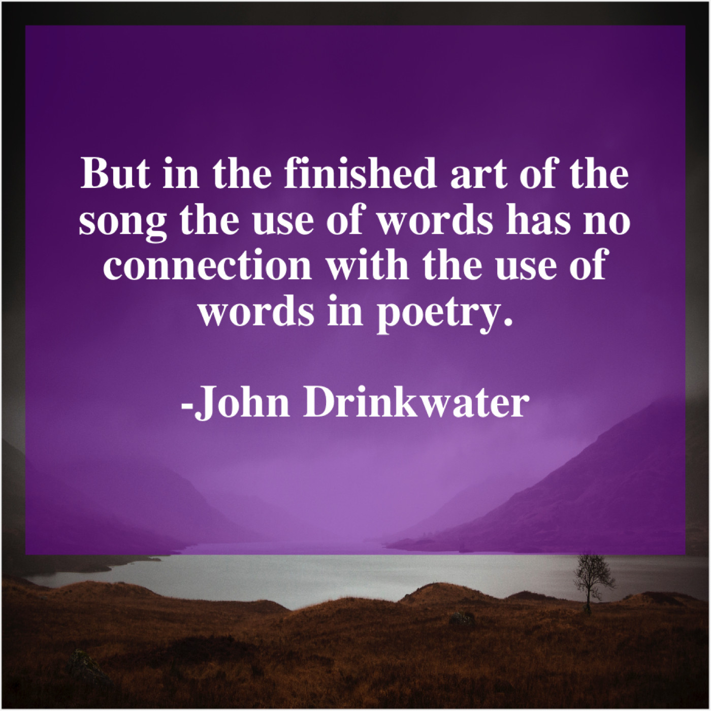 John Drinkwater John Drinkwater – But in the finished art… September 29, 2019 admin “But in the finished art of the song the use of words has no connection with the use of words in poetry.”-John Drinkwater