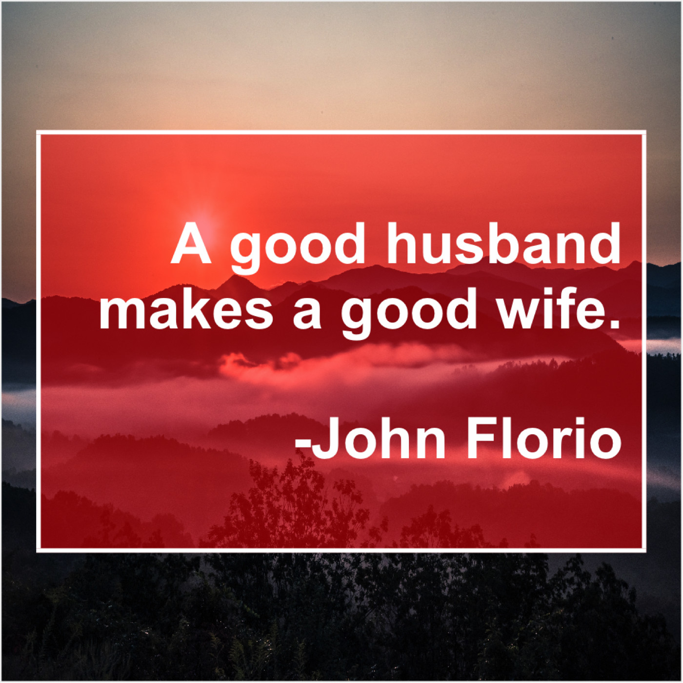 John Florio John Florio – A good husband makes a… September 28, 2019 admin “A good husband makes a good wife.”-John Florio