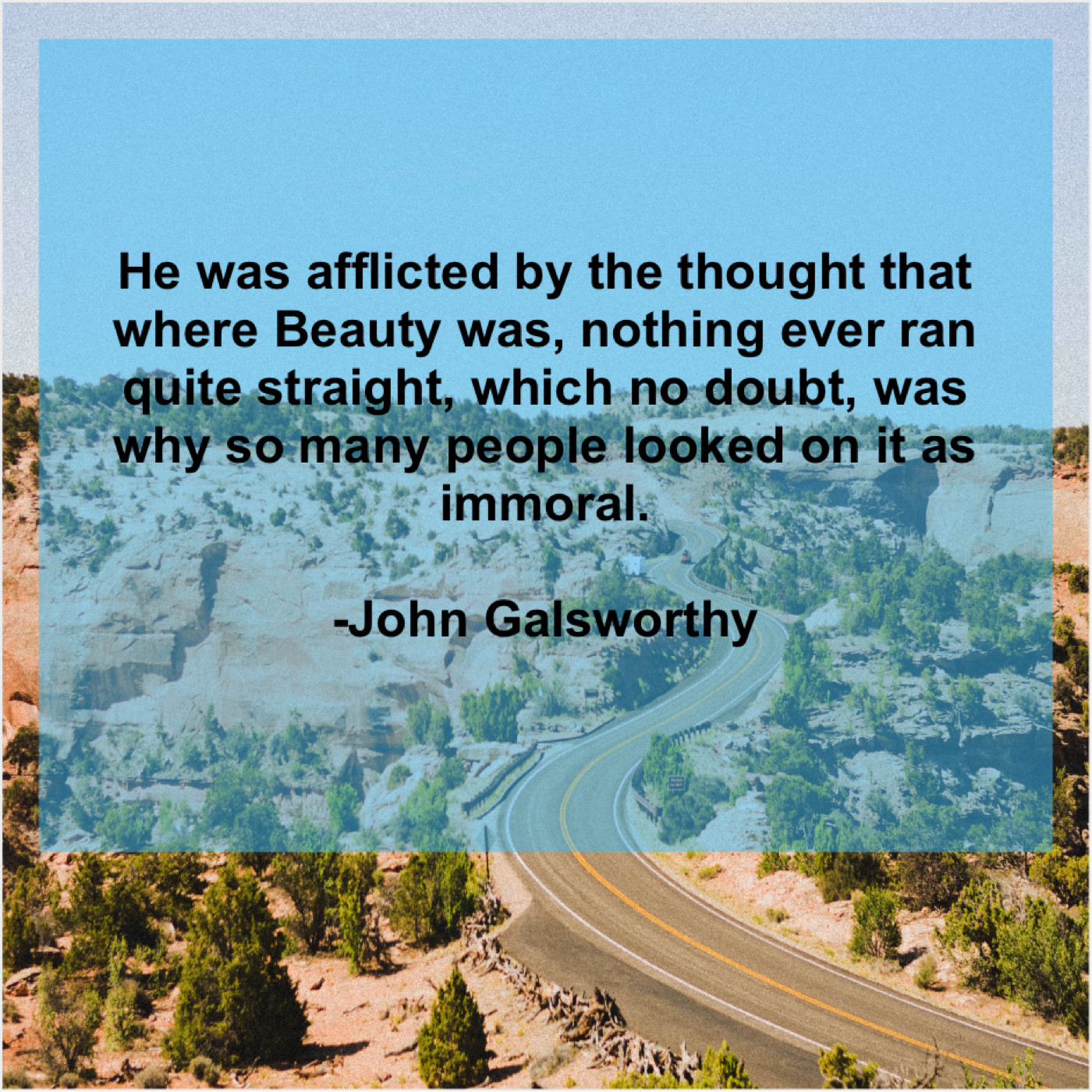 John Galsworthy John Galsworthy – He was afflicted by the… April 4, 2019 admin “He was afflicted by the thought that where Beauty was, nothing ever ran quite straight, which no doubt, was why so many people looked on it as immoral.”-John Galsworthy