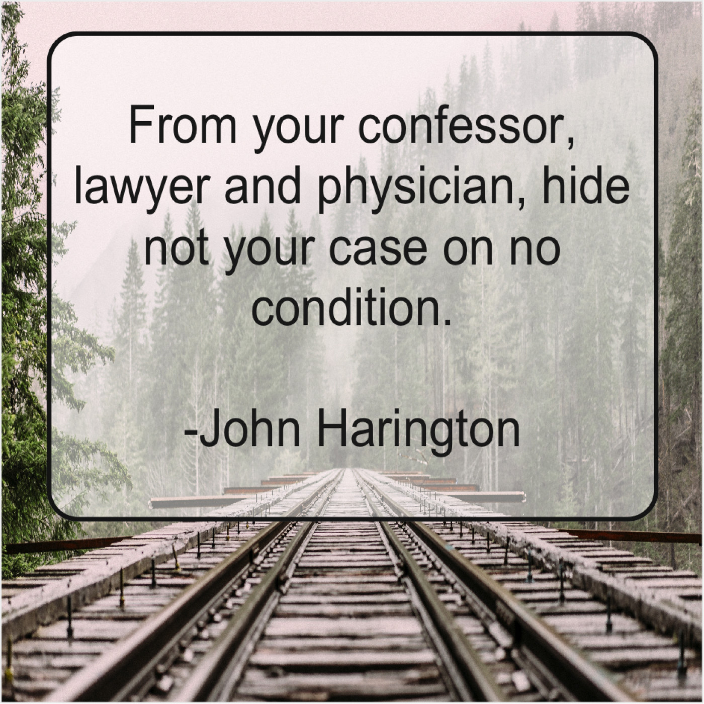 John Harington John Harington – From your confessor, lawyer and… July 30, 2019 admin “From your confessor, lawyer and physician, hide not your case on no condition.”-John Harington