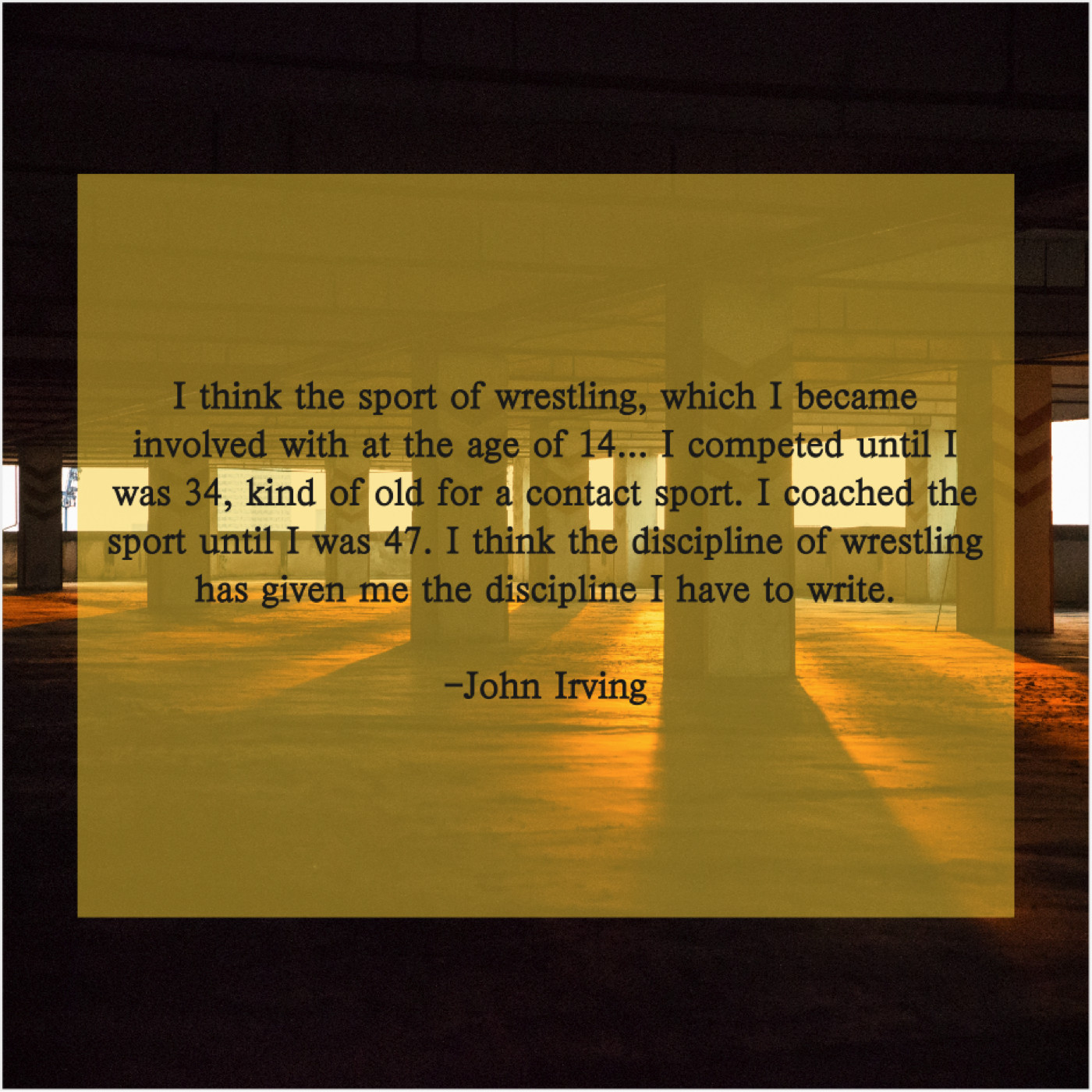 “I think the sport of wrestling, which I became involved with at the age of 14… I competed until I was 34, kind of old for a contact sport. I coached the sport until I was 47. I think the discipline of wrestling has given me the discipline I have to write.”