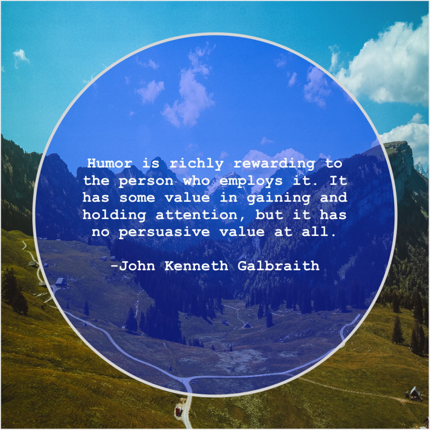 John Kenneth Galbraith John Kenneth Galbraith – Humor is richly rewarding to… February 7, 2019 admin “Humor is richly rewarding to the person who employs it. It has some value in gaining and holding attention, but it has no persuasive value at all.”-John Kenneth Galbraith