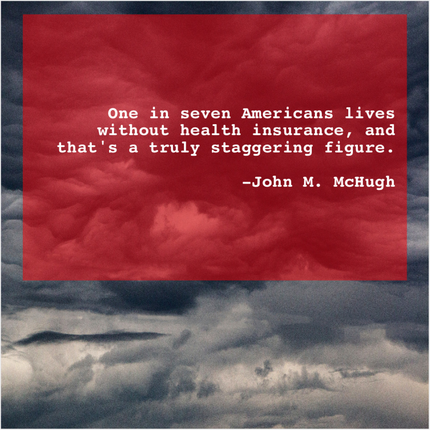 John M. McHugh John M. McHugh – One in seven Americans lives… April 4, 2019 admin “One in seven Americans lives without health insurance, and that’s a truly staggering figure.”-John M. McHugh