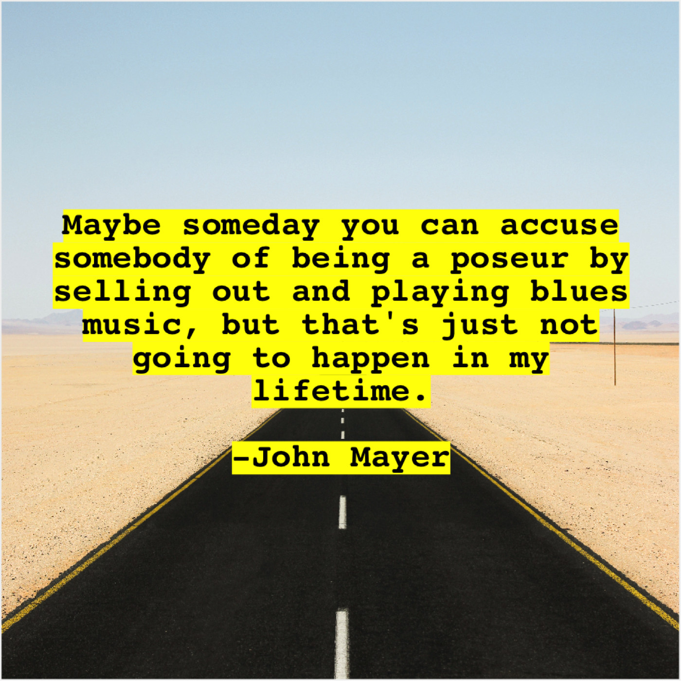 John Mayer John Mayer – Maybe someday you can accuse… February 24, 2019 admin “Maybe someday you can accuse somebody of being a poseur by selling out and playing blues music, but that’s just not going to happen in my lifetime.”-John Mayer