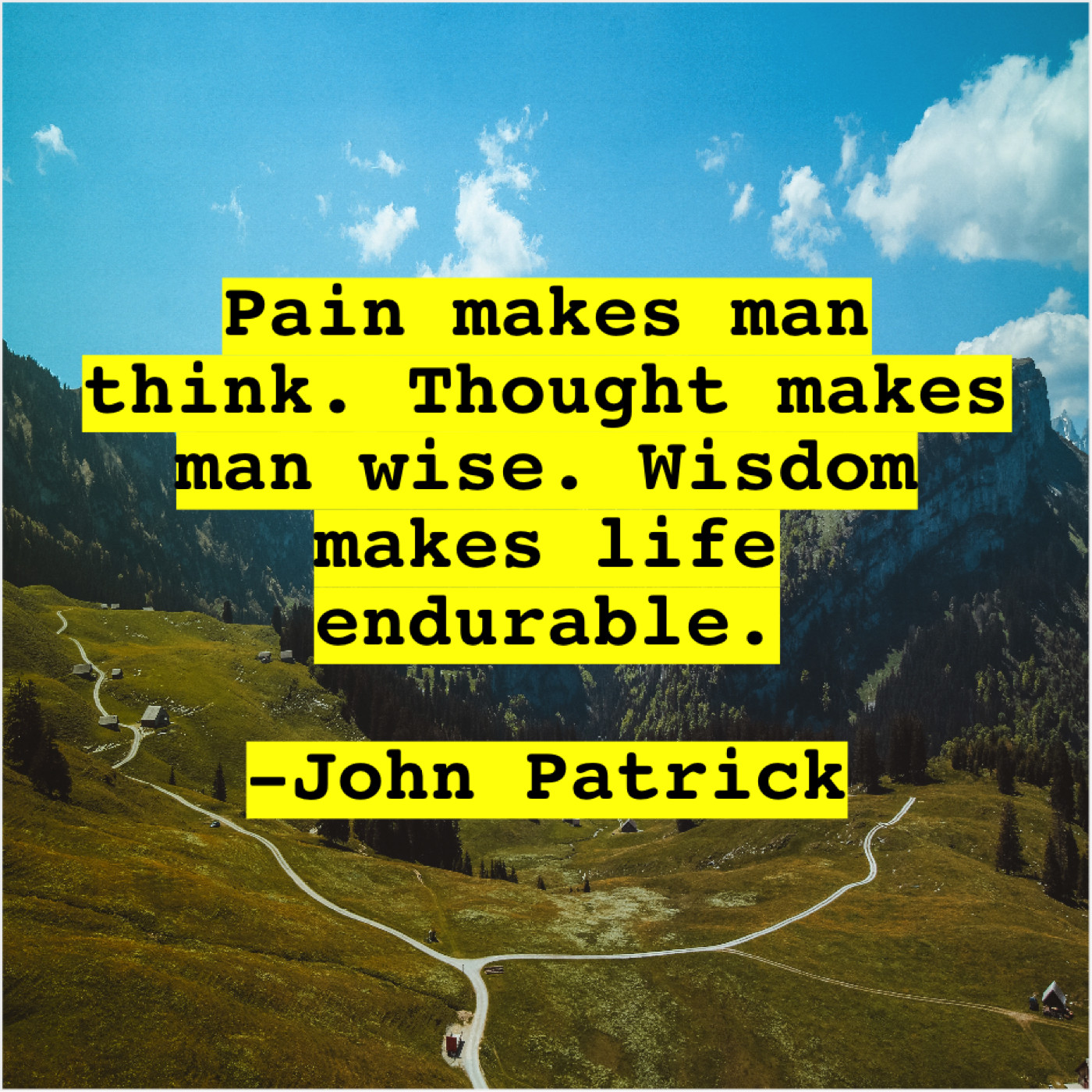 John Patrick John Patrick – Pain makes man think. Thought… February 27, 2019 admin “Pain makes man think. Thought makes man wise. Wisdom makes life endurable.”-John Patrick