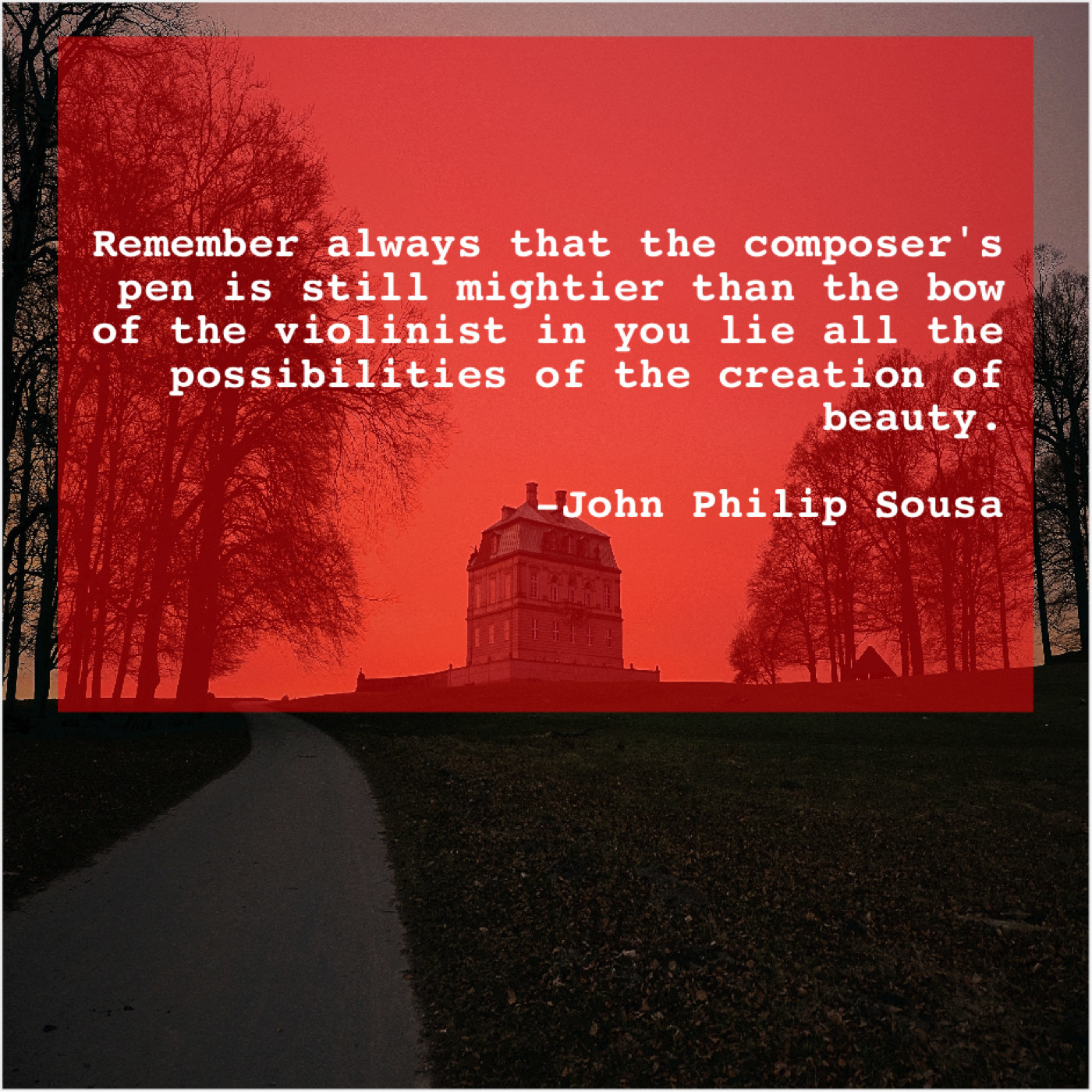 John Philip Sousa John Philip Sousa – Remember always that the composer’s… June 15, 2019 admin “Remember always that the composer’s pen is still mightier than the bow of the violinist in you lie all the possibilities of the creation of beauty.”-John Philip Sousa