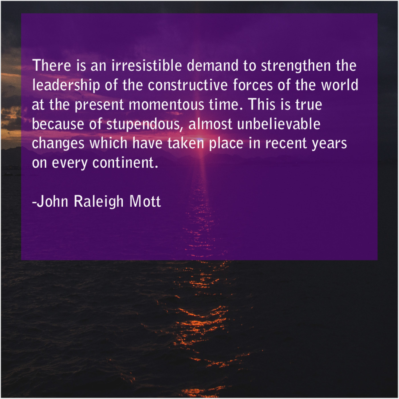 “There is an irresistible demand to strengthen the leadership of the constructive forces of the world at the present momentous time. This is true because of stupendous, almost unbelievable changes which have taken place in recent years on every continent.”
