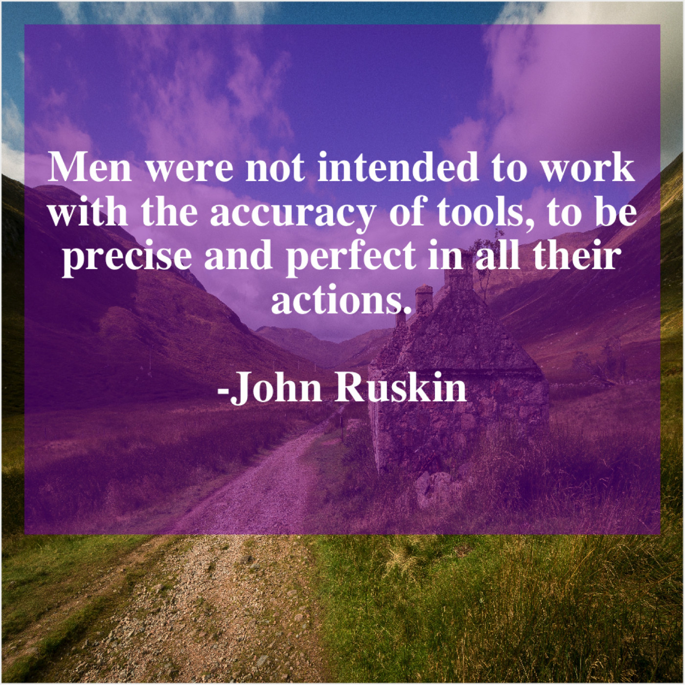 John Ruskin John Ruskin – Men were not intended to… January 24, 2019 admin “Men were not intended to work with the accuracy of tools, to be precise and perfect in all their actions.”-John Ruskin