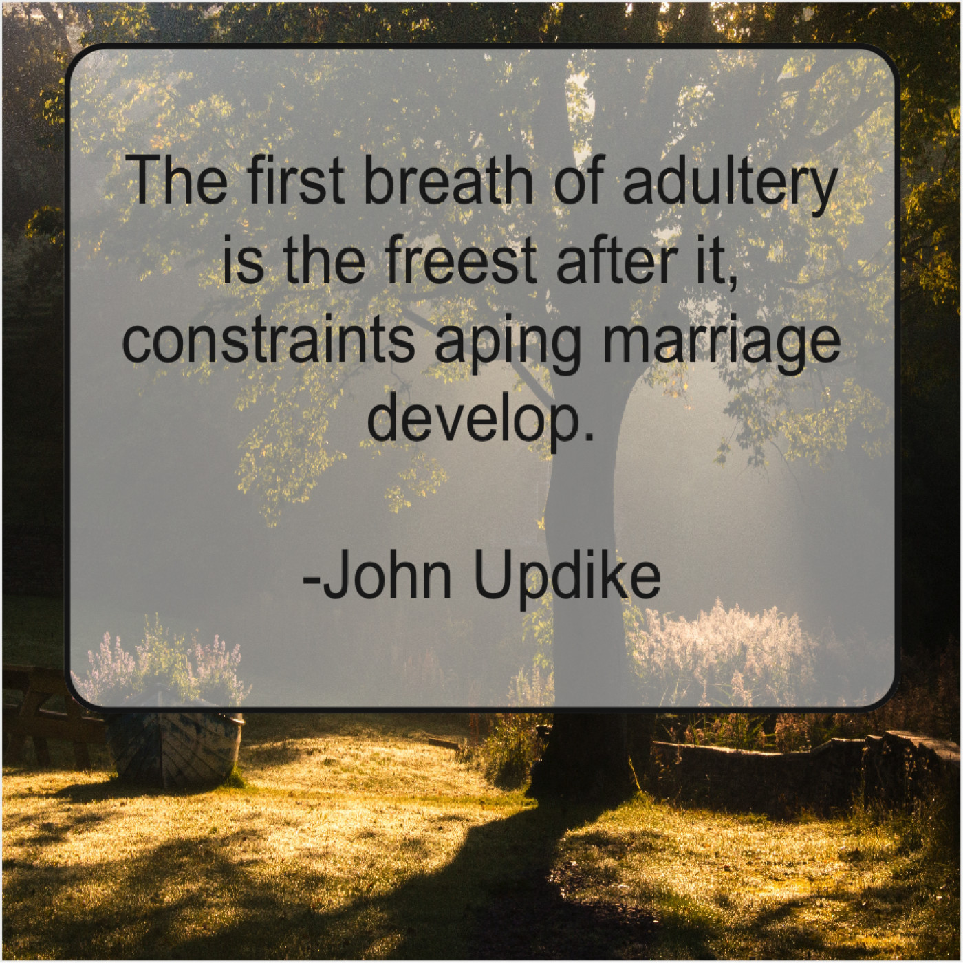 John Updike John Updike – The first breath of adultery… January 8, 2019 admin “The first breath of adultery is the freest after it, constraints aping marriage develop.”-John Updike