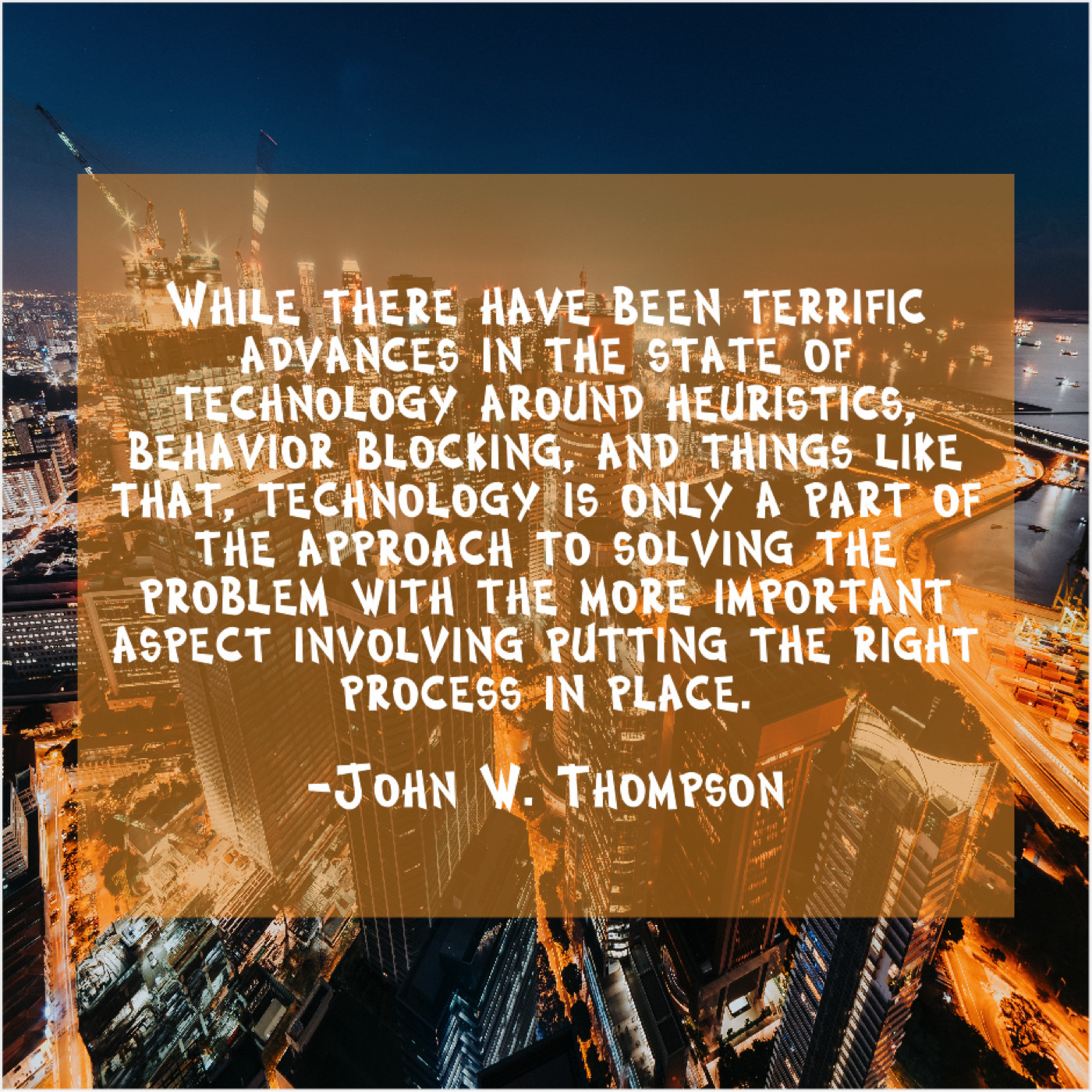 “While there have been terrific advances in the state of technology around heuristics, behavior blocking, and things like that, technology is only a part of the approach to solving the problem with the more important aspect involving putting the right process in place.”