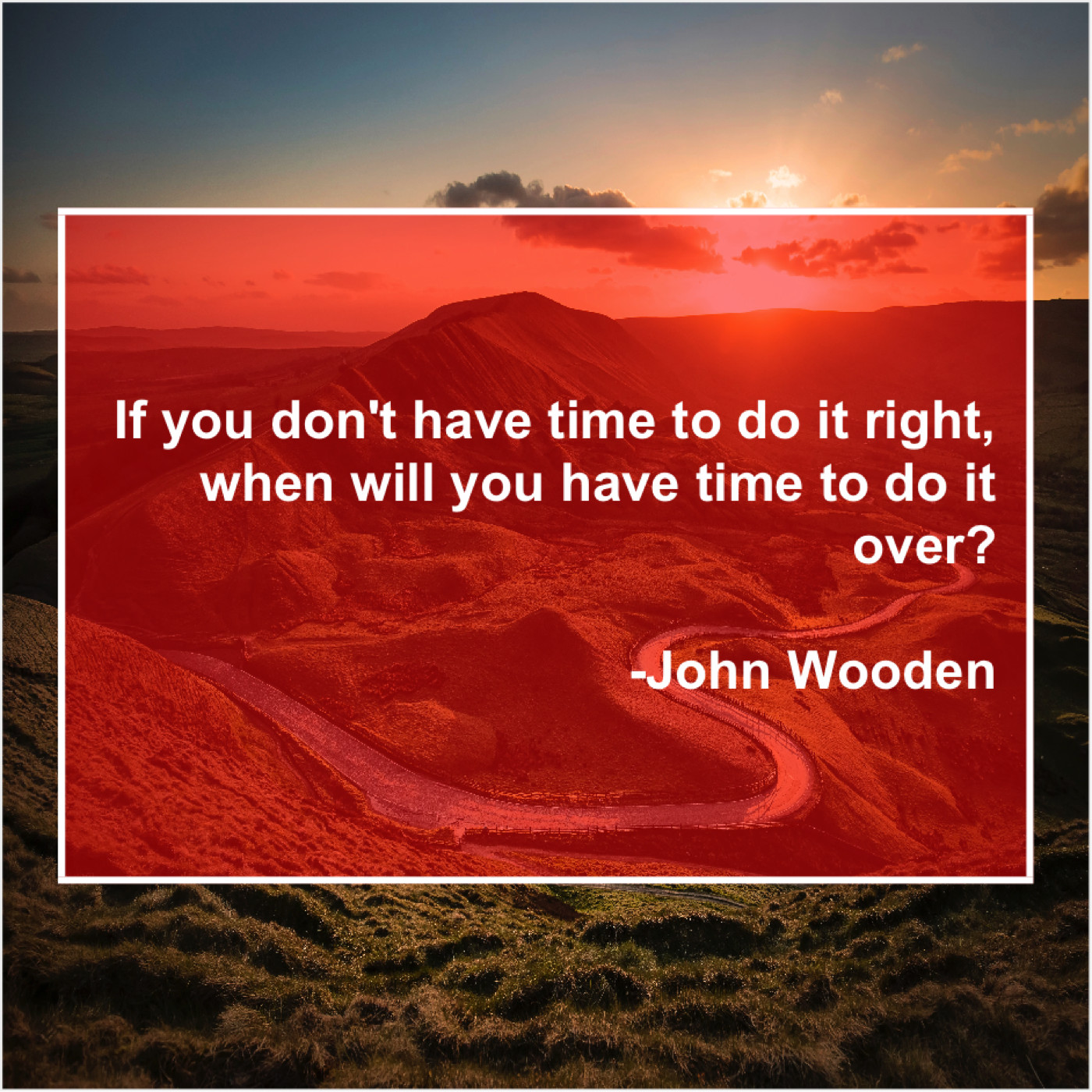 John Wooden John Wooden – If you don’t have time… July 23, 2019 admin “If you don’t have time to do it right, when will you have time to do it over?”-John Wooden