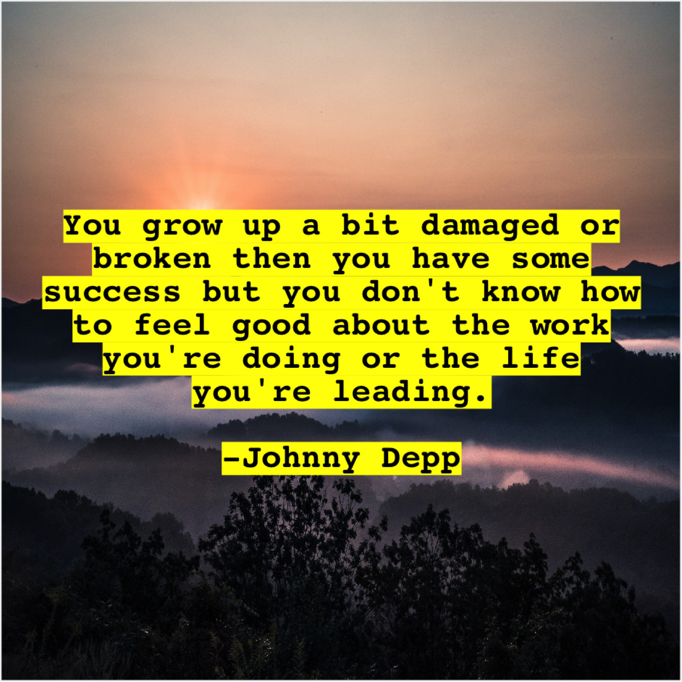 Johnny Depp Johnny Depp – You grow up a bit… July 6, 2019 admin “You grow up a bit damaged or broken then you have some success but you don’t know how to feel good about the work you’re doing or the life you’re leading.”-Johnny Depp