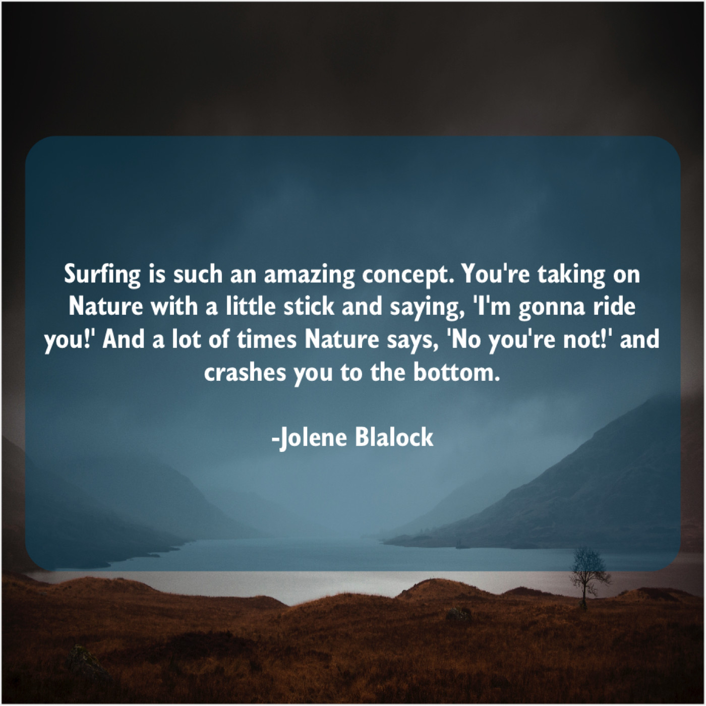 Jolene Blalock Jolene Blalock – Surfing is such an amazing… May 28, 2019 admin “Surfing is such an amazing concept. You’re taking on Nature with a little stick and saying, ‘I’m gonna ride you!’ And a lot of times Nature says, ‘No you’re not!’ and crashes you to the bottom.”-Jolene Blalock