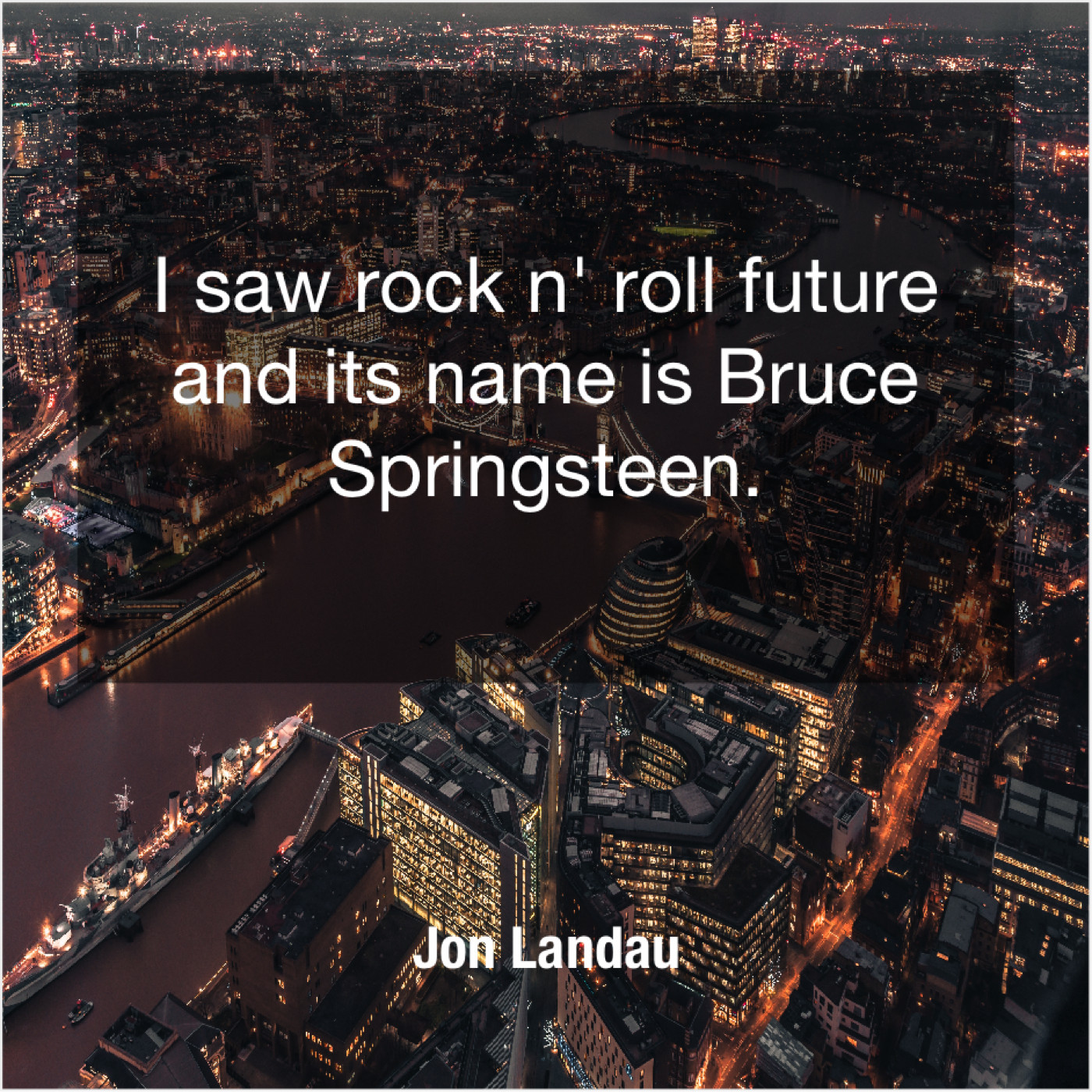 Jon Landau Jon Landau – I saw rock n’ roll… August 29, 2019 admin “I saw rock n’ roll future and its name is Bruce Springsteen.”-Jon Landau