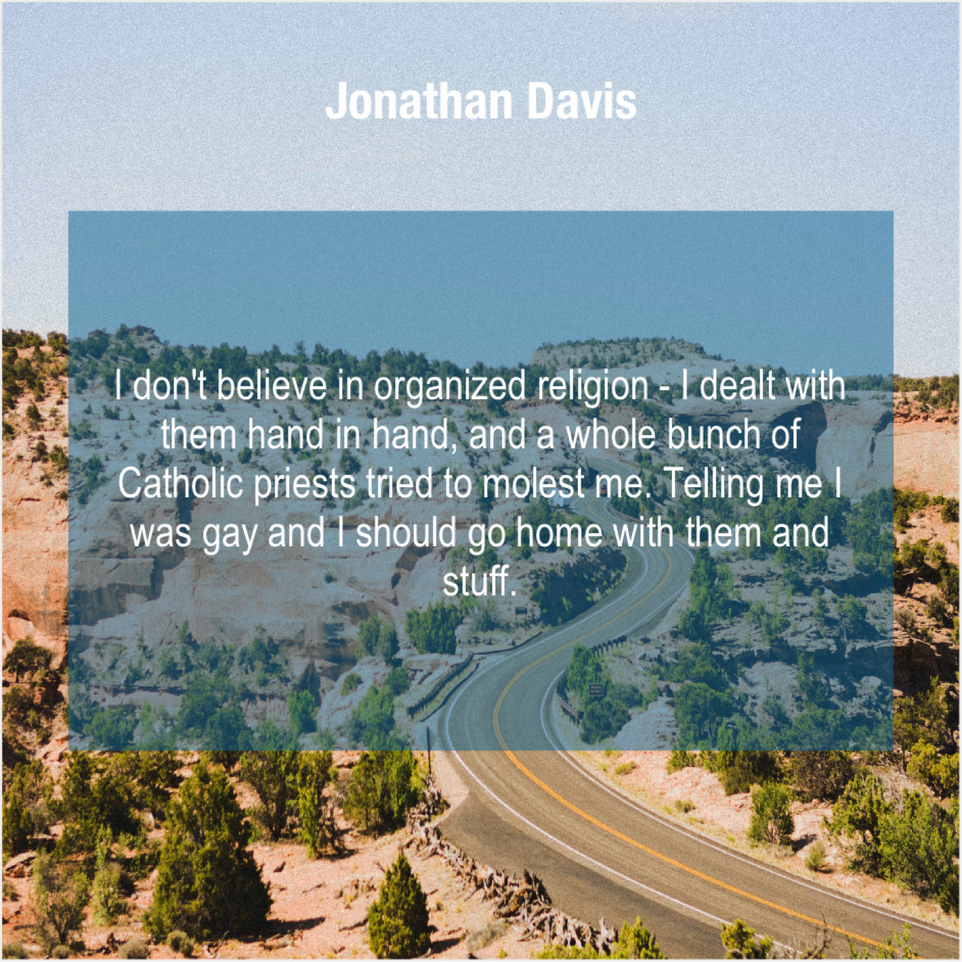 Jonathan Davis Jonathan Davis – I don’t believe in organized… April 6, 2019 admin “I don’t believe in organized religion – I dealt with them hand in hand, and a whole bunch of Catholic priests tried to molest me. Telling me I was gay and I should go home with them and stuff.”-Jonathan Davis