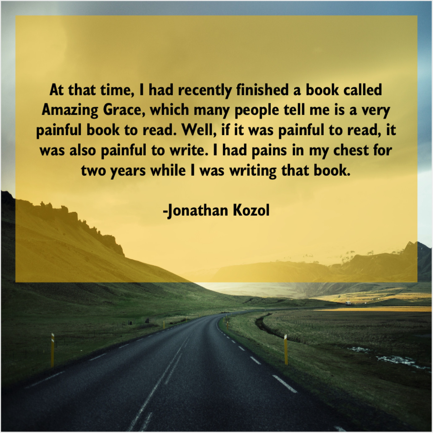 “At that time, I had recently finished a book called Amazing Grace, which many people tell me is a very painful book to read. Well, if it was painful to read, it was also painful to write. I had pains in my chest for two years while I was writing that book.”