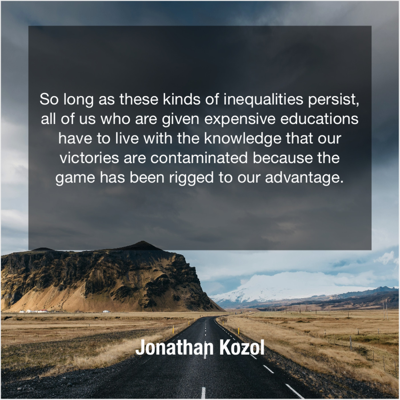 Jonathan Kozol Jonathan Kozol – So long as these kinds… May 12, 2019 admin “So long as these kinds of inequalities persist, all of us who are given expensive educations have to live with the knowledge that our victories are contaminated because the game has been rigged to our advantage.”-Jonathan Kozol