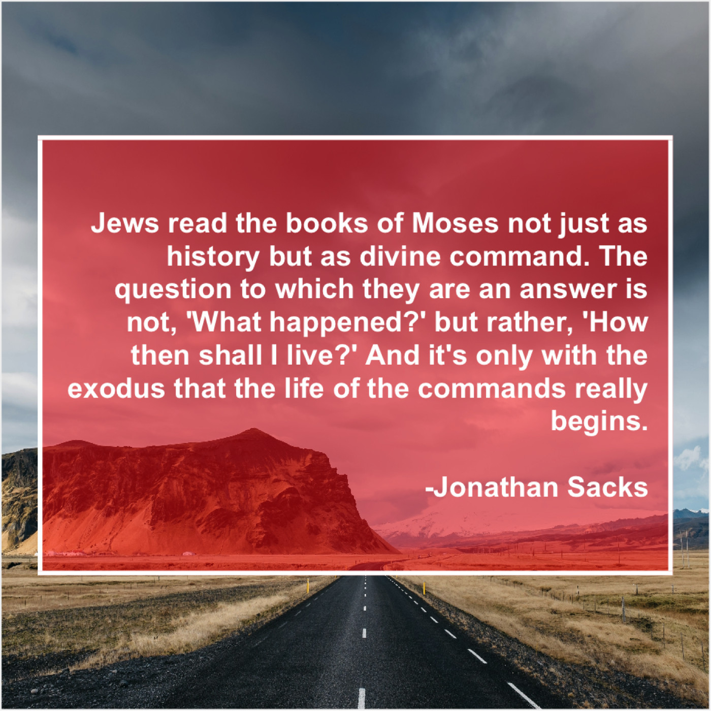 “Jews read the books of Moses not just as history but as divine command. The question to which they are an answer is not, ‘What happened?’ but rather, ‘How then shall I live?’ And it’s only with the exodus that the life of the commands really begins.”