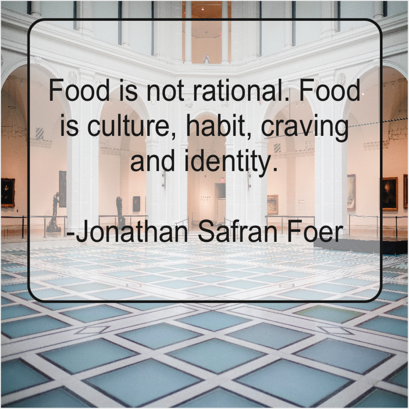 Jonathan Safran Foer Jonathan Safran Foer – Food is not rational. Food… July 25, 2019 admin “Food is not rational. Food is culture, habit, craving and identity.”-Jonathan Safran Foer