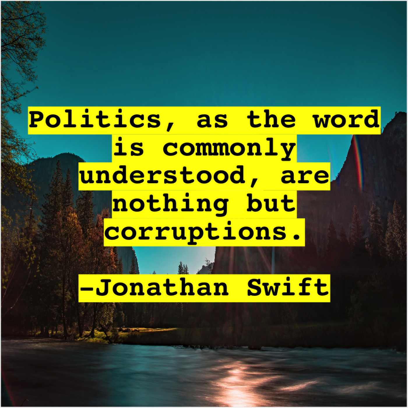 Jonathan Swift Jonathan Swift – Politics, as the word is… February 11, 2019 admin “Politics, as the word is commonly understood, are nothing but corruptions.”-Jonathan Swift