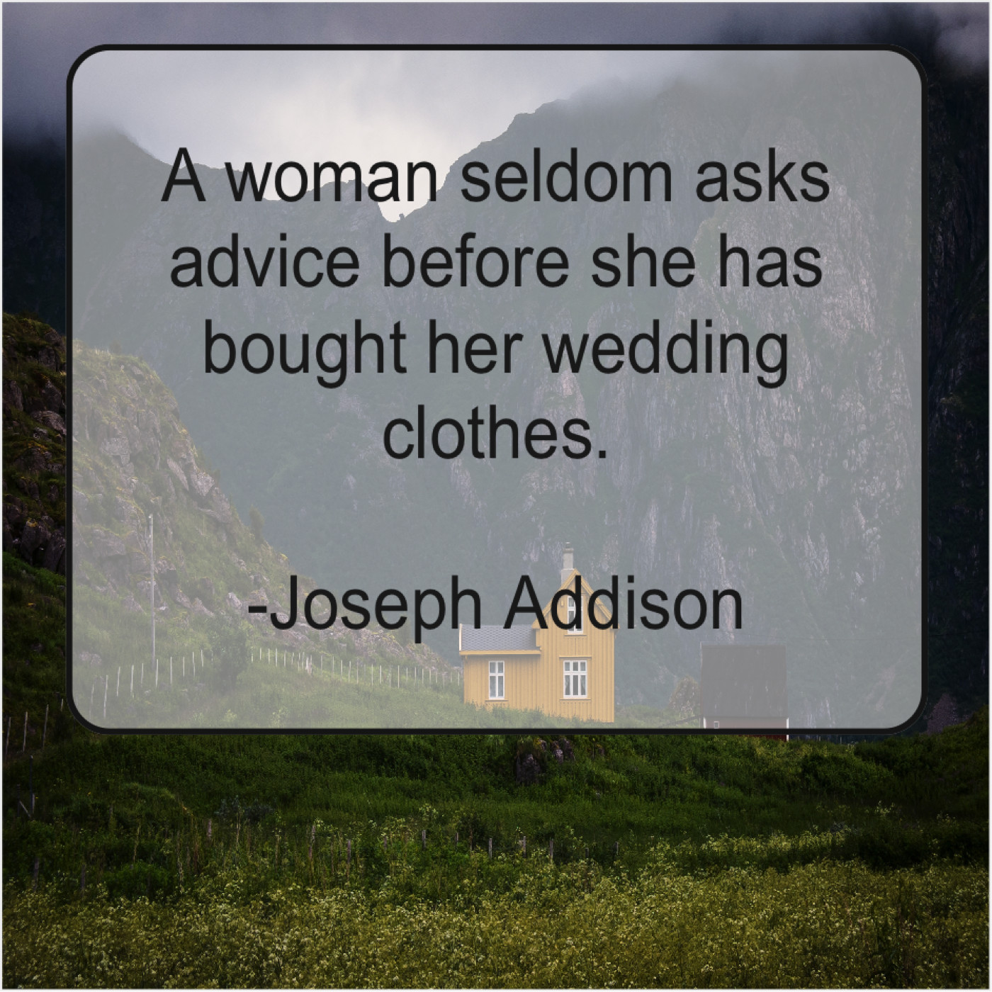 Joseph Addison Joseph Addison – A woman seldom asks advice… July 3, 2019 admin “A woman seldom asks advice before she has bought her wedding clothes.”-Joseph Addison