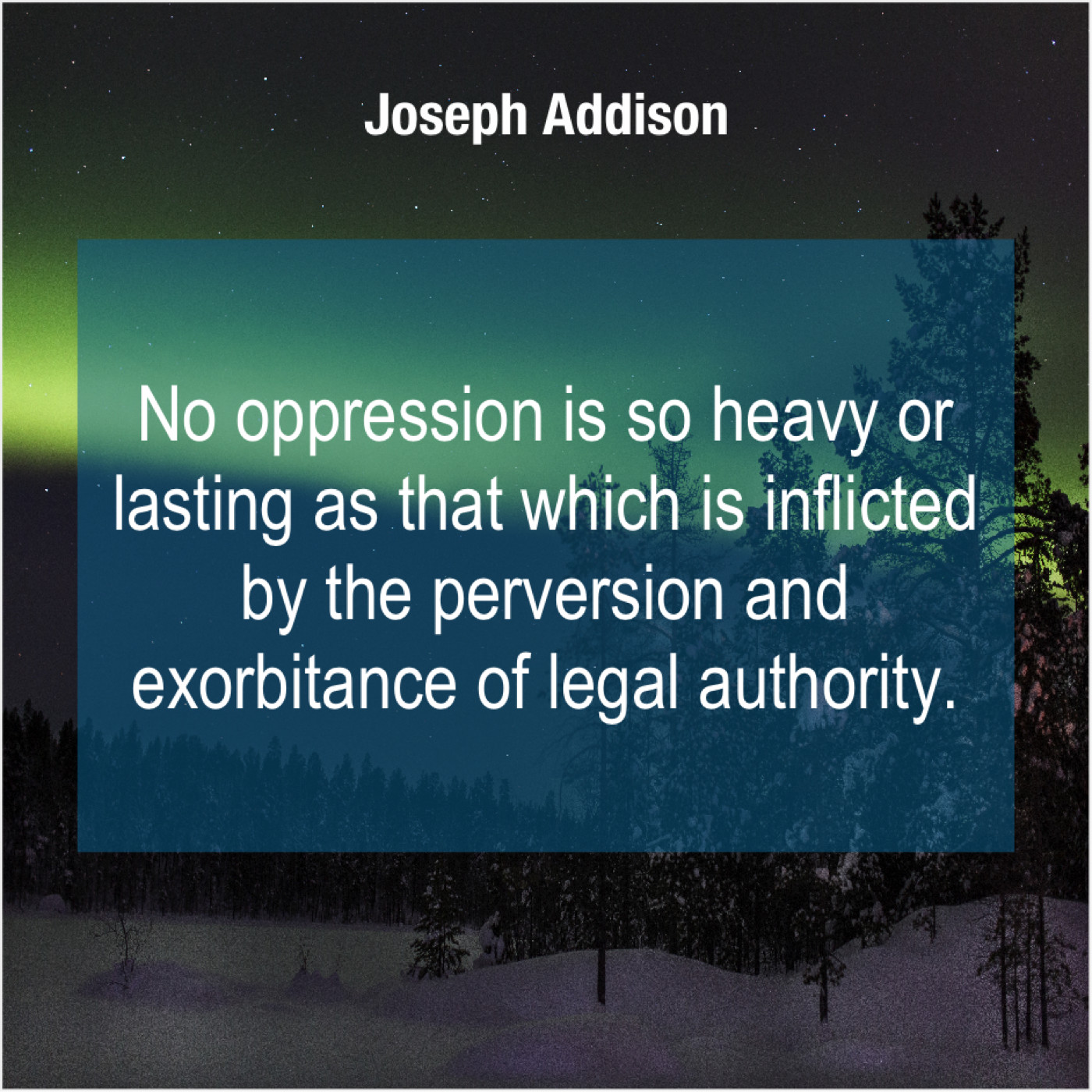 Joseph Addison Joseph Addison – No oppression is so heavy… July 22, 2019 admin “No oppression is so heavy or lasting as that which is inflicted by the perversion and exorbitance of legal authority.”-Joseph Addison
