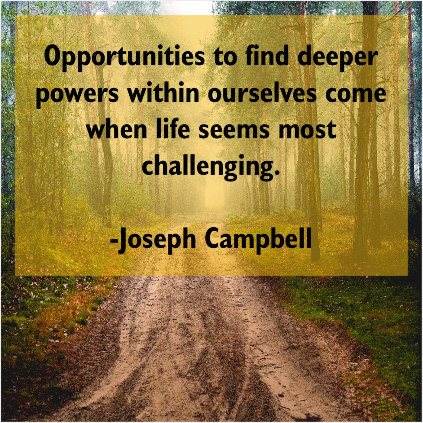 Joseph Campbell Joseph Campbell – Opportunities to find deeper powers… February 1, 2019 admin “Opportunities to find deeper powers within ourselves come when life seems most challenging.”-Joseph Campbell