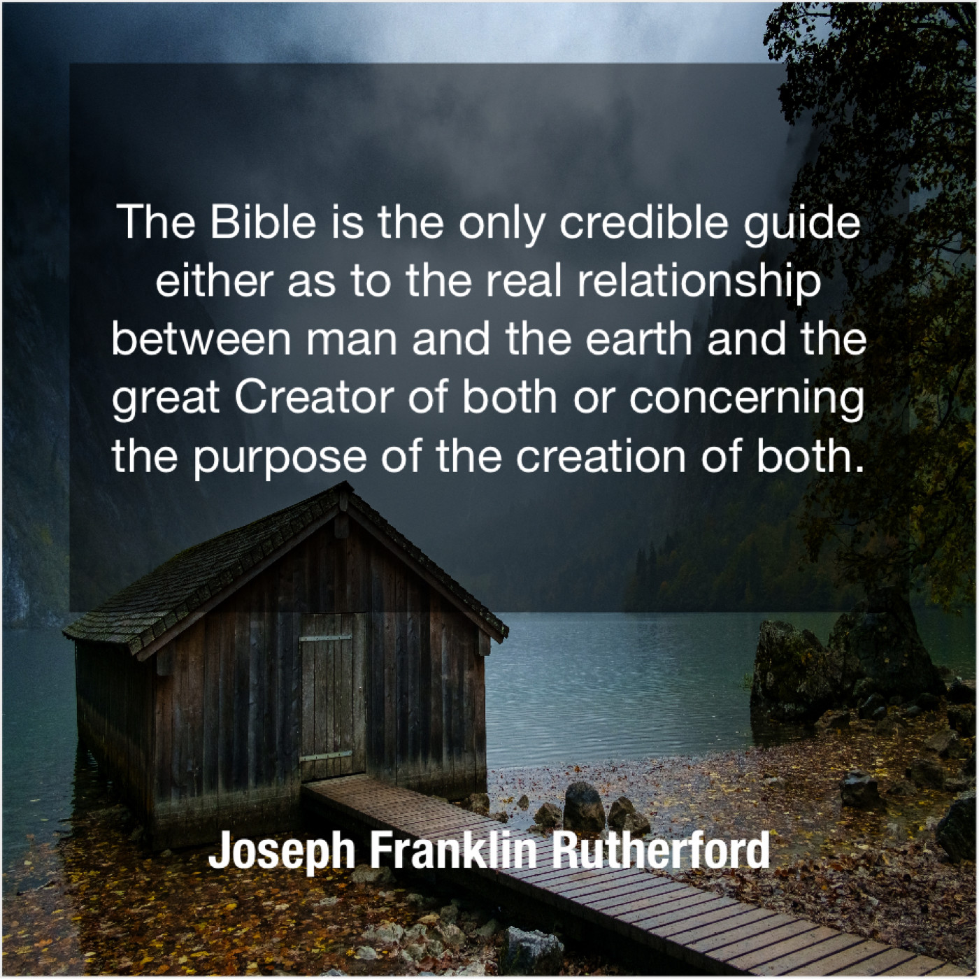 Joseph Franklin Rutherford Joseph Franklin Rutherford – The Bible is the only… December 18, 2018 admin “The Bible is the only credible guide either as to the real relationship between man and the earth and the great Creator of both or concerning the purpose of the creation of both.”-Joseph Franklin Rutherford