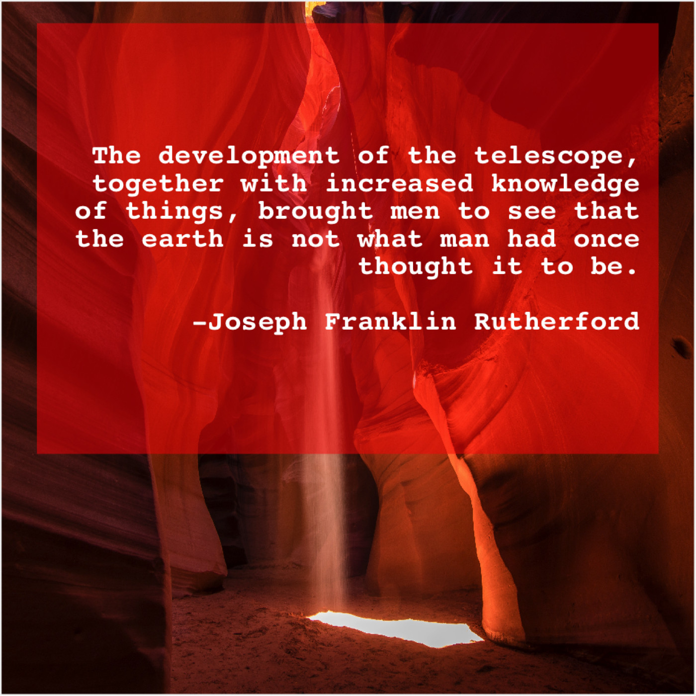 Joseph Franklin Rutherford Joseph Franklin Rutherford – The development of the telescope… October 21, 2019 admin “The development of the telescope, together with increased knowledge of things, brought men to see that the earth is not what man had once thought it to be.”-Joseph Franklin Rutherford