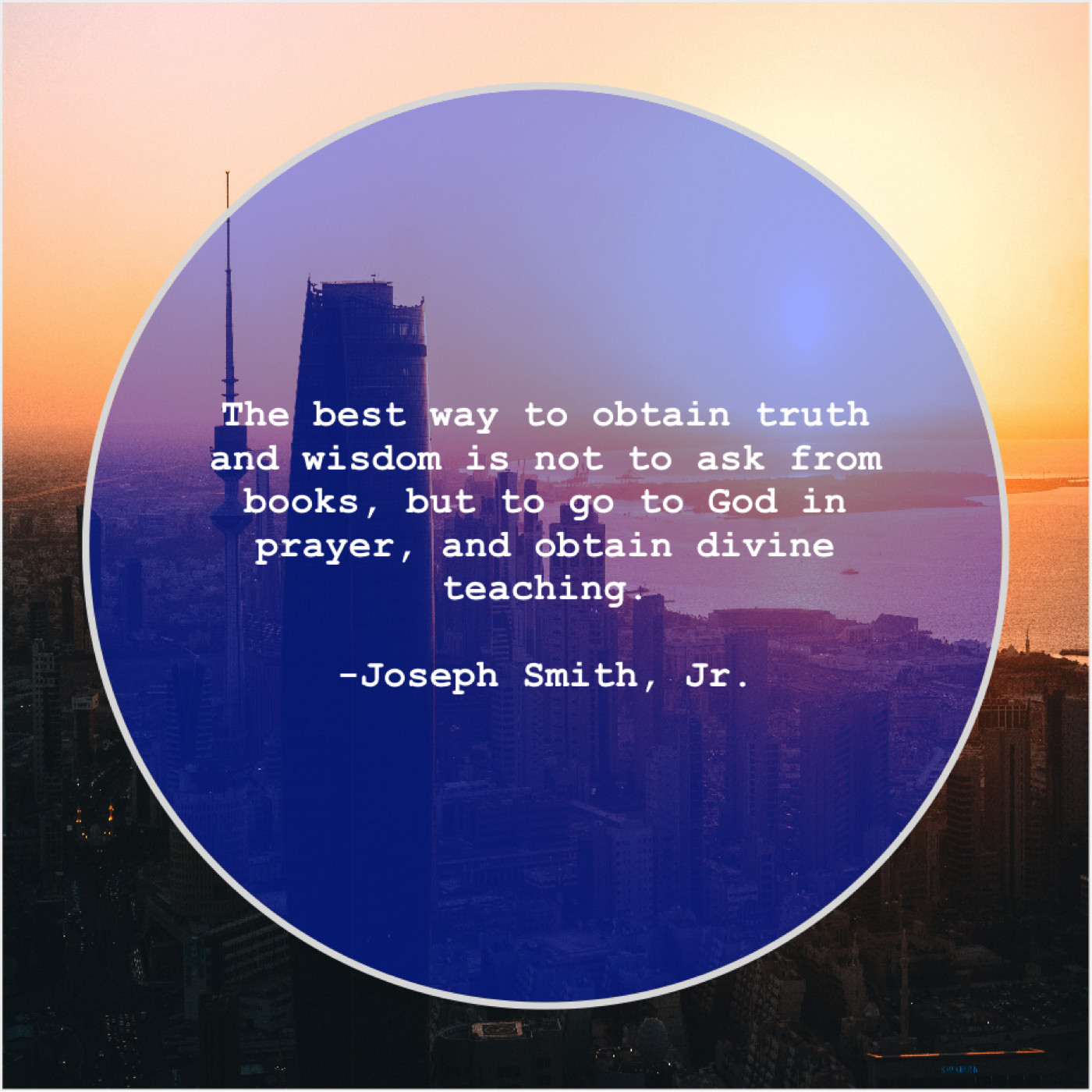 Joseph Smith, Jr. Joseph Smith, Jr. – The best way to obtain… November 10, 2018 admin “The best way to obtain truth and wisdom is not to ask from books, but to go to God in prayer, and obtain divine teaching.”-Joseph Smith, Jr.