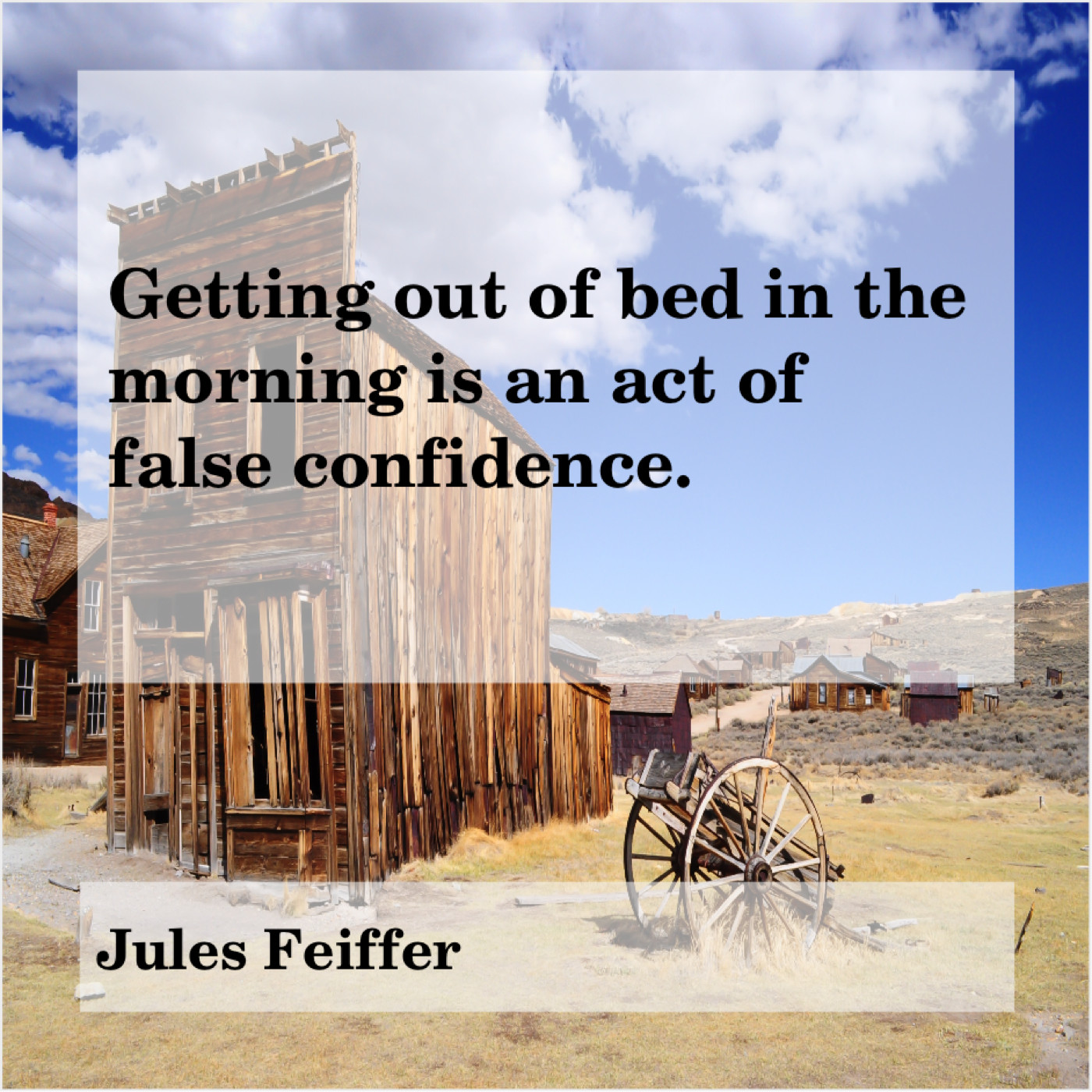 Jules Feiffer Jules Feiffer – Getting out of bed in… March 30, 2019 admin “Getting out of bed in the morning is an act of false confidence.”-Jules Feiffer