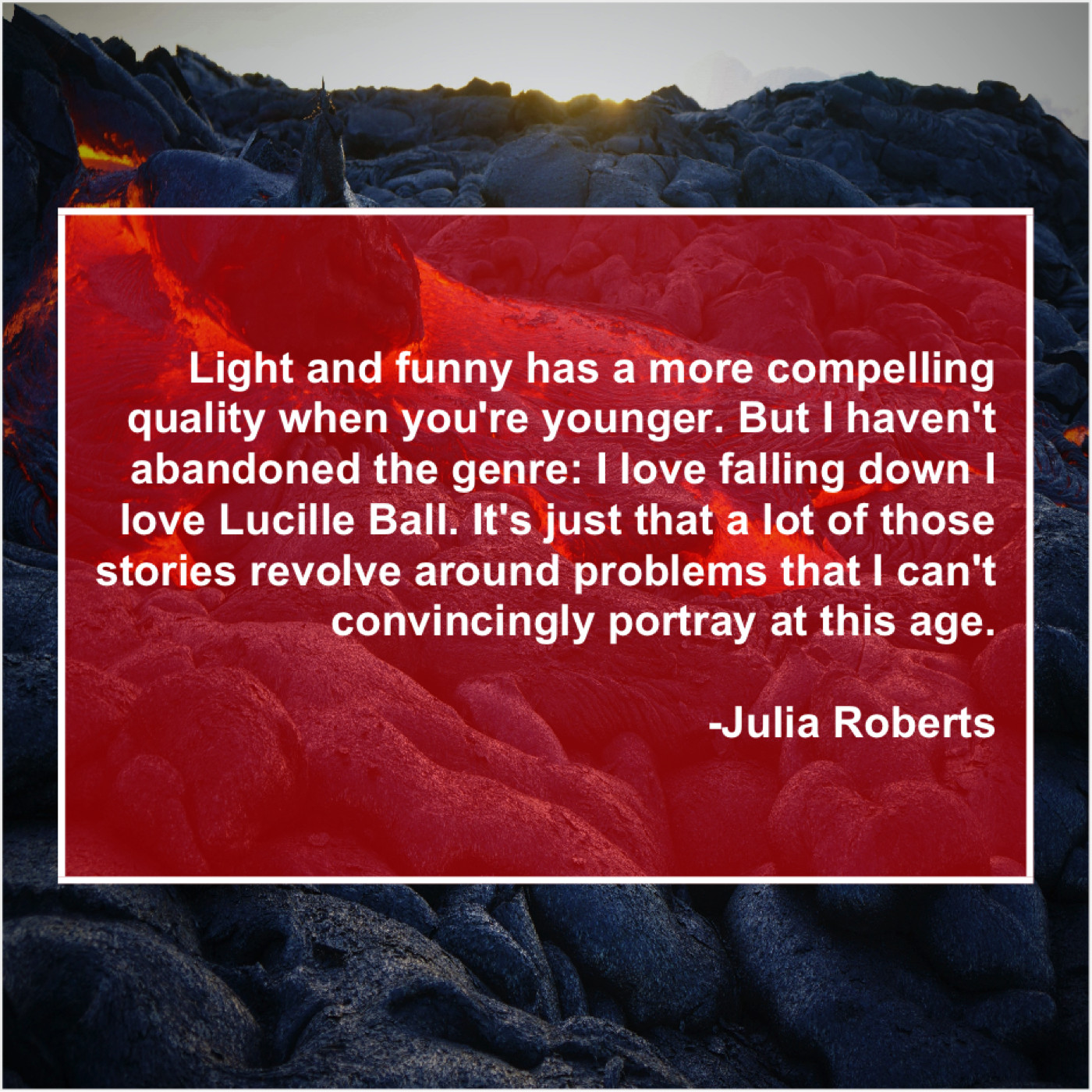 “Light and funny has a more compelling quality when you’re younger. But I haven’t abandoned the genre: I love falling down I love Lucille Ball. It’s just that a lot of those stories revolve around problems that I can’t convincingly portray at this age.”