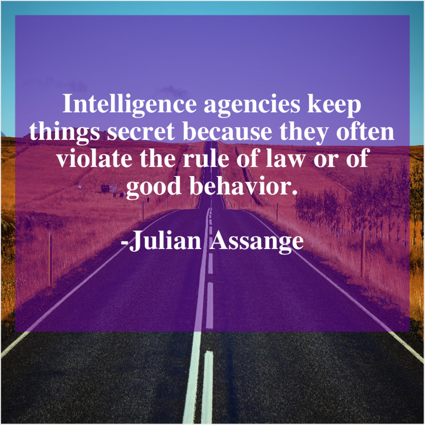 Julian Assange Julian Assange – Intelligence agencies keep things secret… July 12, 2019 admin “Intelligence agencies keep things secret because they often violate the rule of law or of good behavior.”-Julian Assange