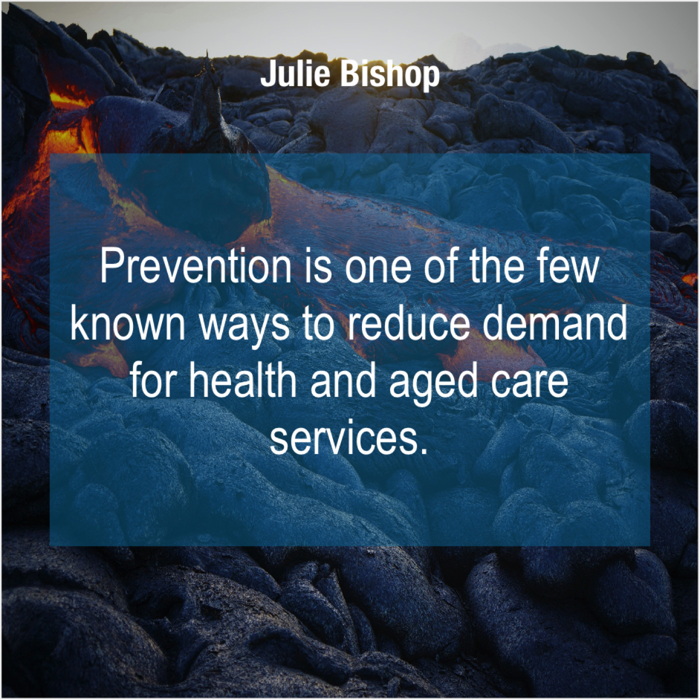 Julie Bishop Julie Bishop – Prevention is one of the… September 7, 2019 admin “Prevention is one of the few known ways to reduce demand for health and aged care services.”-Julie Bishop